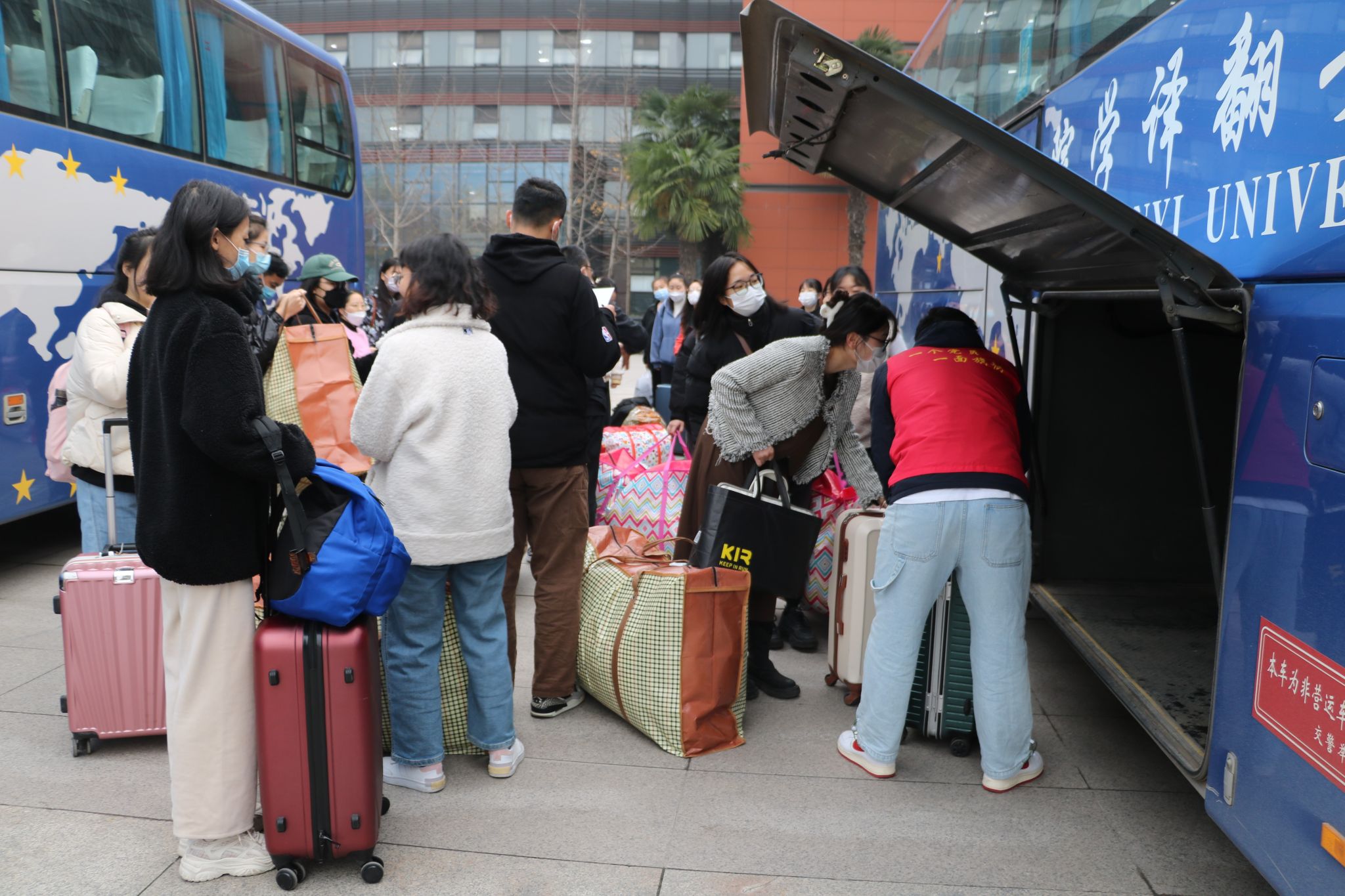 2022年11月18日早上8时30分教育学院学前教育专业集中实习的105名学生在诒华广场集合,校实践教学科科长赵鑫、教育学院副院长王小龙、副院长辛维英、教育学院全体院务会成员和带队老师欢送实习生赴各园开展毕业实习。实习生按照事先安排好的名单和车辆,在带队老师的指引下、学生志愿者和热情的车队司机的帮助下,有序存放行李、按号上车,送往实习目的地,本次毕业实习工作在分院领导的统一指导下顺利开展。
