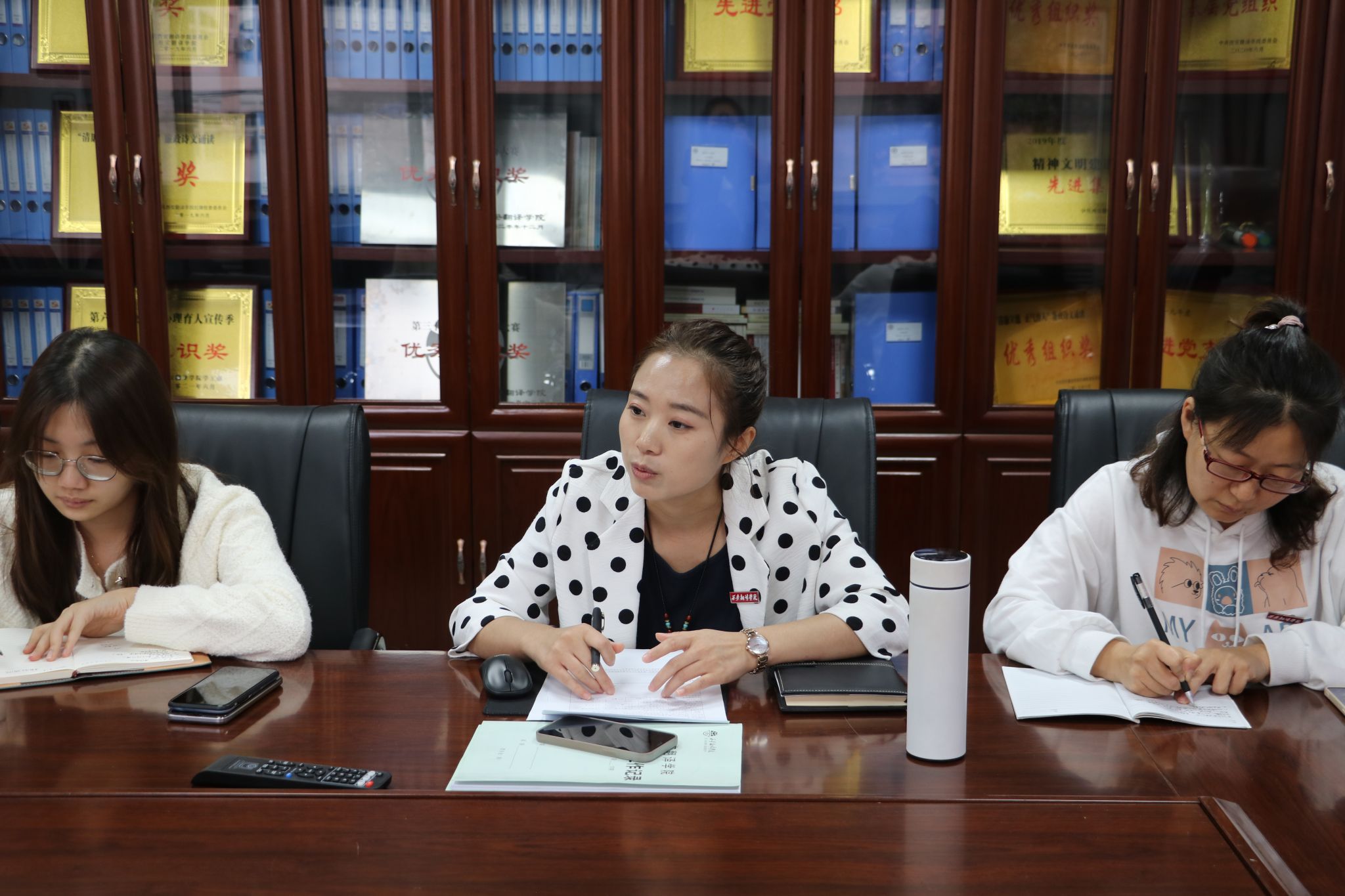为进一步加强教育学院本科毕业论文规范管理,确保今后本科毕业生论文工作的顺利开展, 2022年9月20日下午在八号楼二楼会议室,召开了教育学院本科毕业论文(附件)格式规范专题研讨会,会议由教育学院教学副院长庞小佳主持,学前教育系主任黄玉芳、系副主任杜赟,小学教育系主任阎涛、系副主任姜欢、王越和教务科论文负责老师苏勉萍参加了本次研讨。