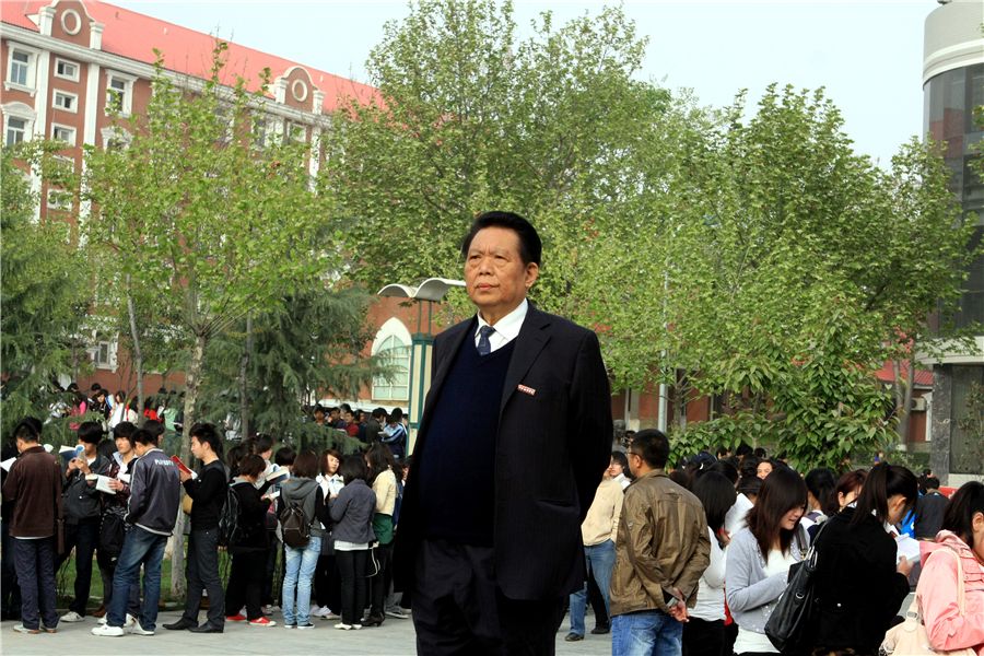 丁祖诒先生检查学生晨读