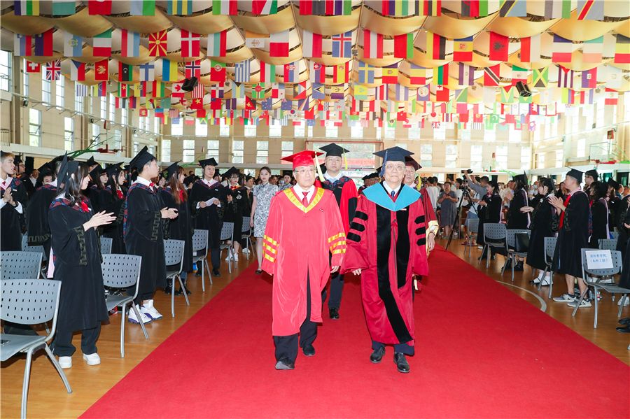 “回望求学岁月,同学们既是学校建设历程的参与者和见证者,也是学校发展的推动者和创造者。”崔智林说:“在西译求学生活的几年里,同学们亲历了新中国成立70周年、中国共产党成立100周年等重大庆祝活动,见证了我国小康社会全面建成、第24届冬季奥运会圆满举办、神舟第十二、十三、十四号载人飞船成功发射等辉煌成就,参与了第十四届全运会的志愿者服务和抗击新冠肺炎疫情的伟大斗争,以实际行动推动了学校‘双一流’建设取得新进展。几年来,同学们秉承‘读书、做人、变革、奋进’的校训,勤奋学习、锐意进取,取得了优异的成绩,展现了西译学子的时代风貌和青春风采。这些成绩是你们的光荣,更是母校永远的骄傲。”