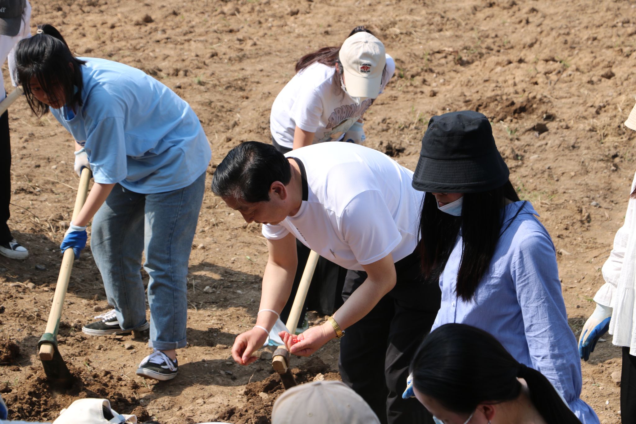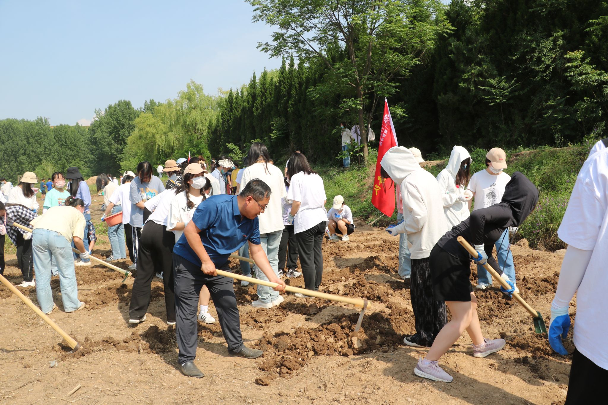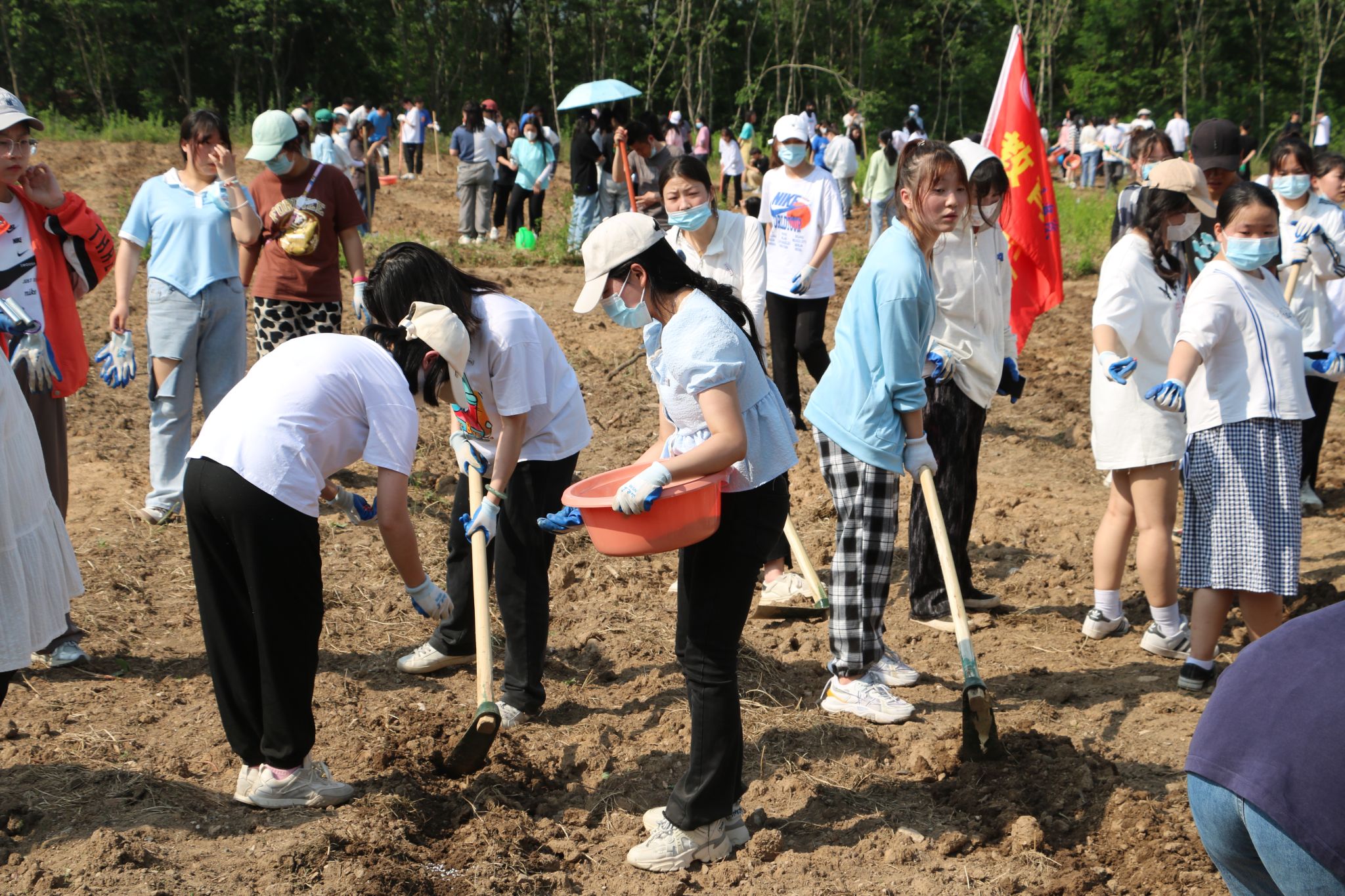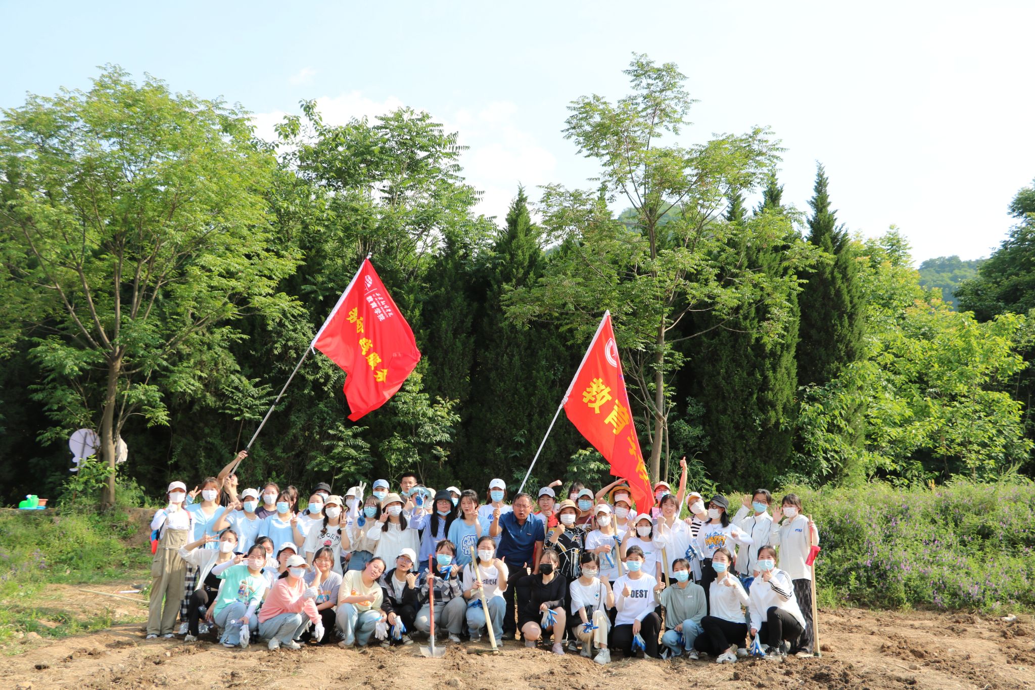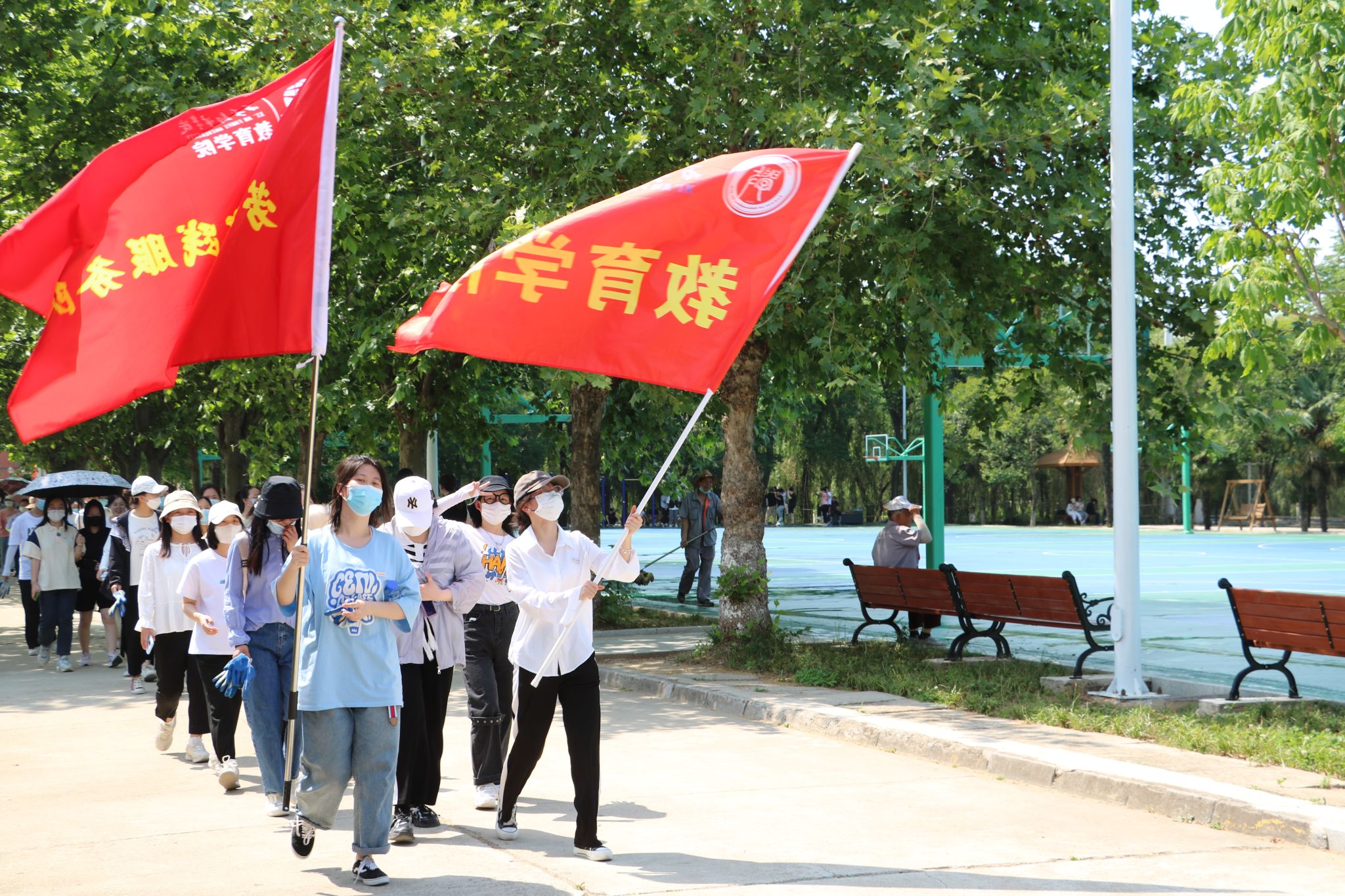 下午2点50分在王小龙院长的带领下,在团总支书记于伟平老师和辅导员邓妙卿老师的指导下,教育学院50多名同学扛着两面大旗迈着矫健的步伐来到校桃园实习基地。