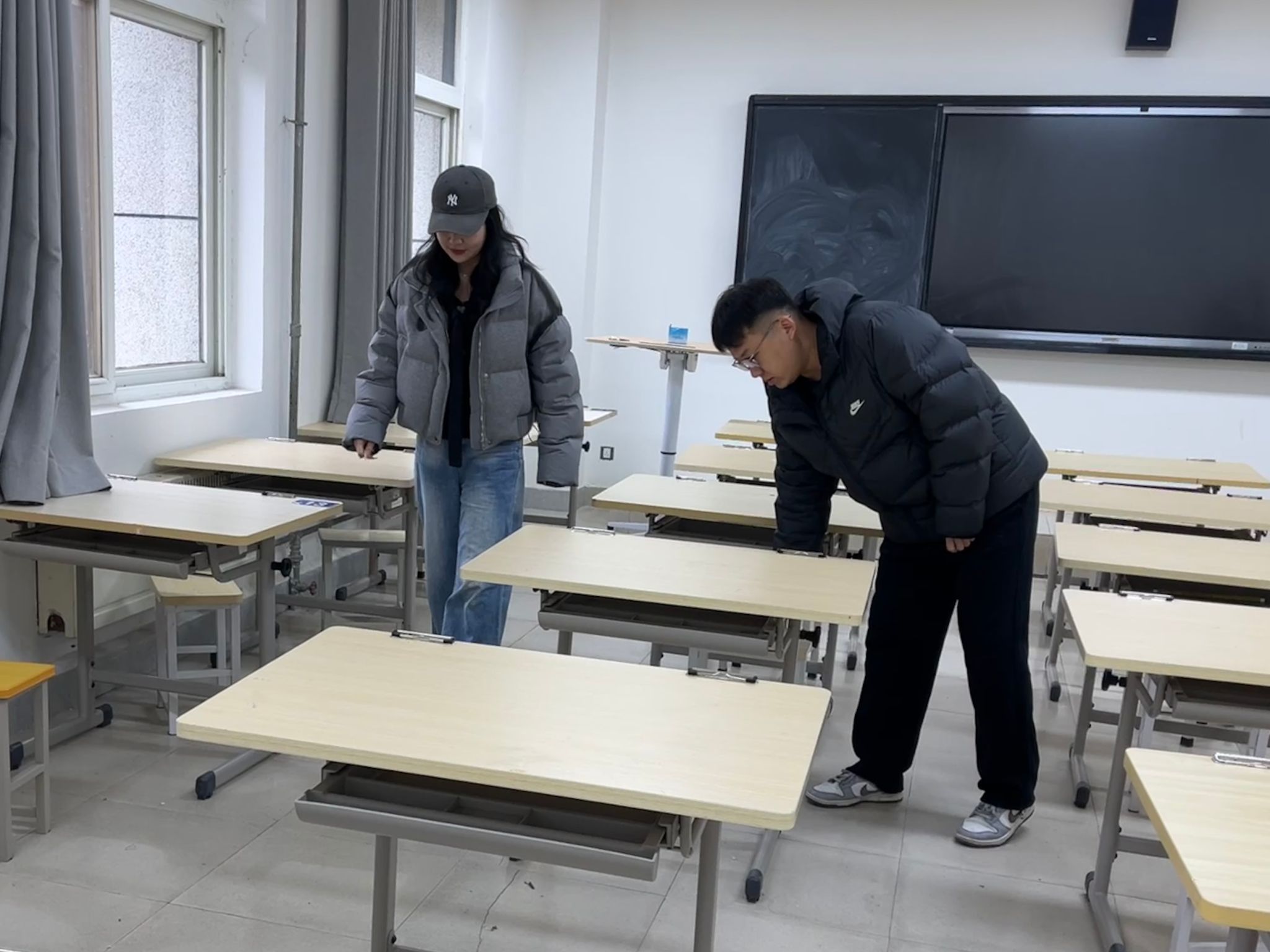 2月21日,全体学工人员对教室卫生和教学设施进行了全面检查。重点检查了桌椅、黑板、多媒体设备等设施的运行情况,并对部分教室存在的卫生问题进行了整改要求,确保开学前所有教室卫生达标、教学设施正常运行,保障教学顺利进行。