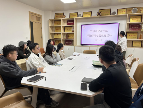 为深入贯彻落实习近平总书记关于教育的重要论述和全国教育大会精神,认真贯彻落实中共西安翻译学院委员会,关于加强和改进新时代师德师风建设的意见,进一步加强和改进师德师风建设,2024年11月6日,艺术与设计学院召开师德师风教育专题研讨会。会议由综合办副主任王瑛主持,学工系统全体辅导员参会。