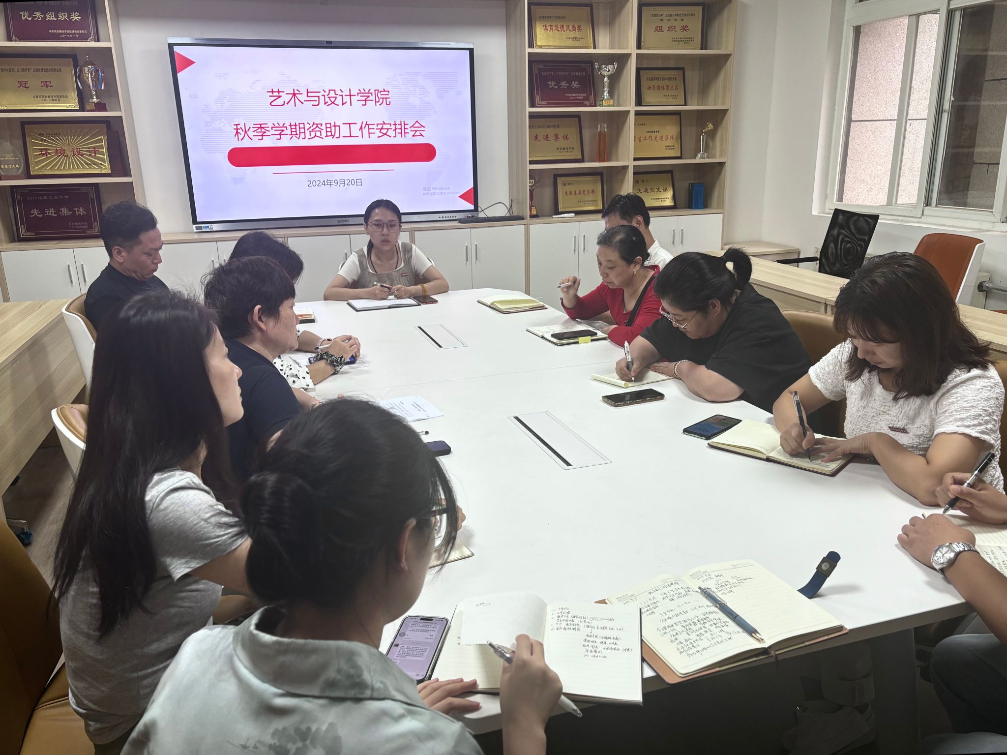 9月20日上午,艺术与设计学院召开2024—2025学年资助工作安排会。综合办副主任王瑛主持会议,全体学工人员参加。