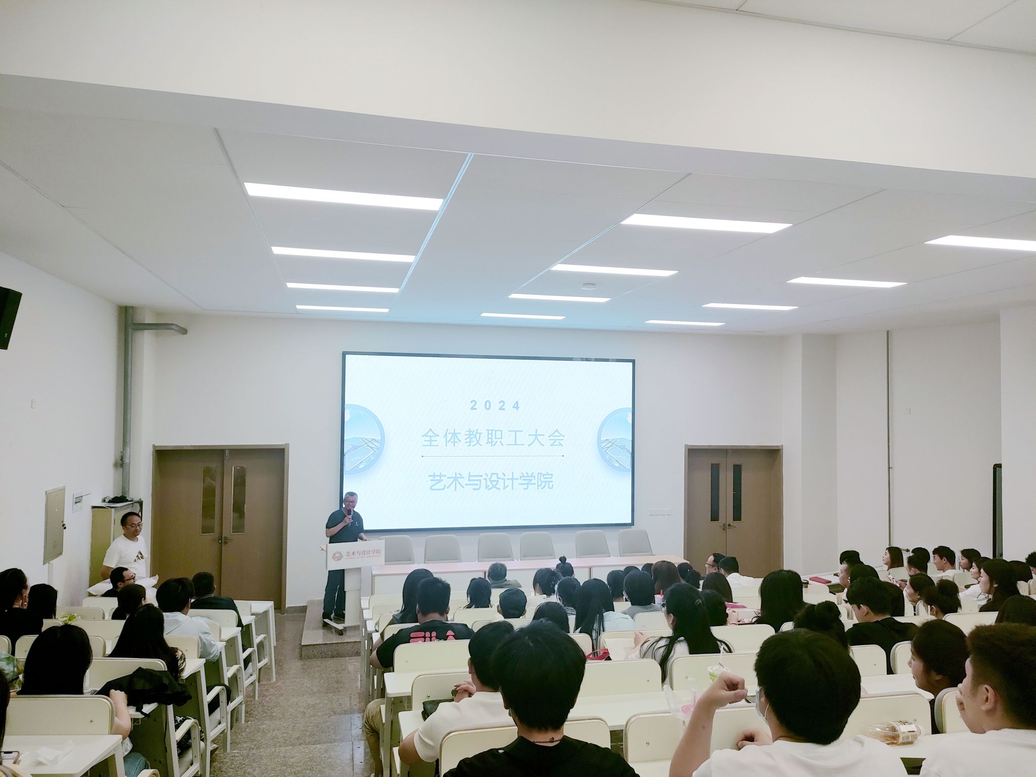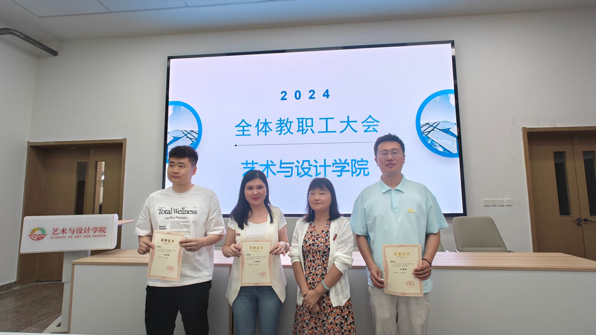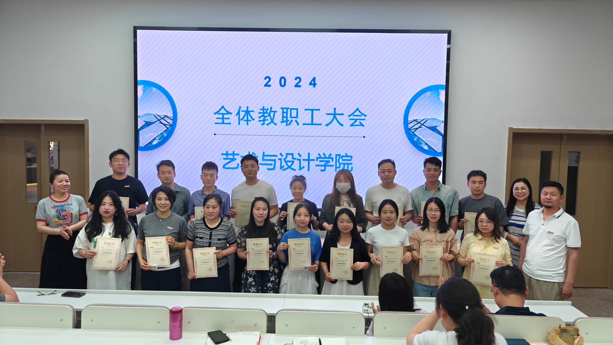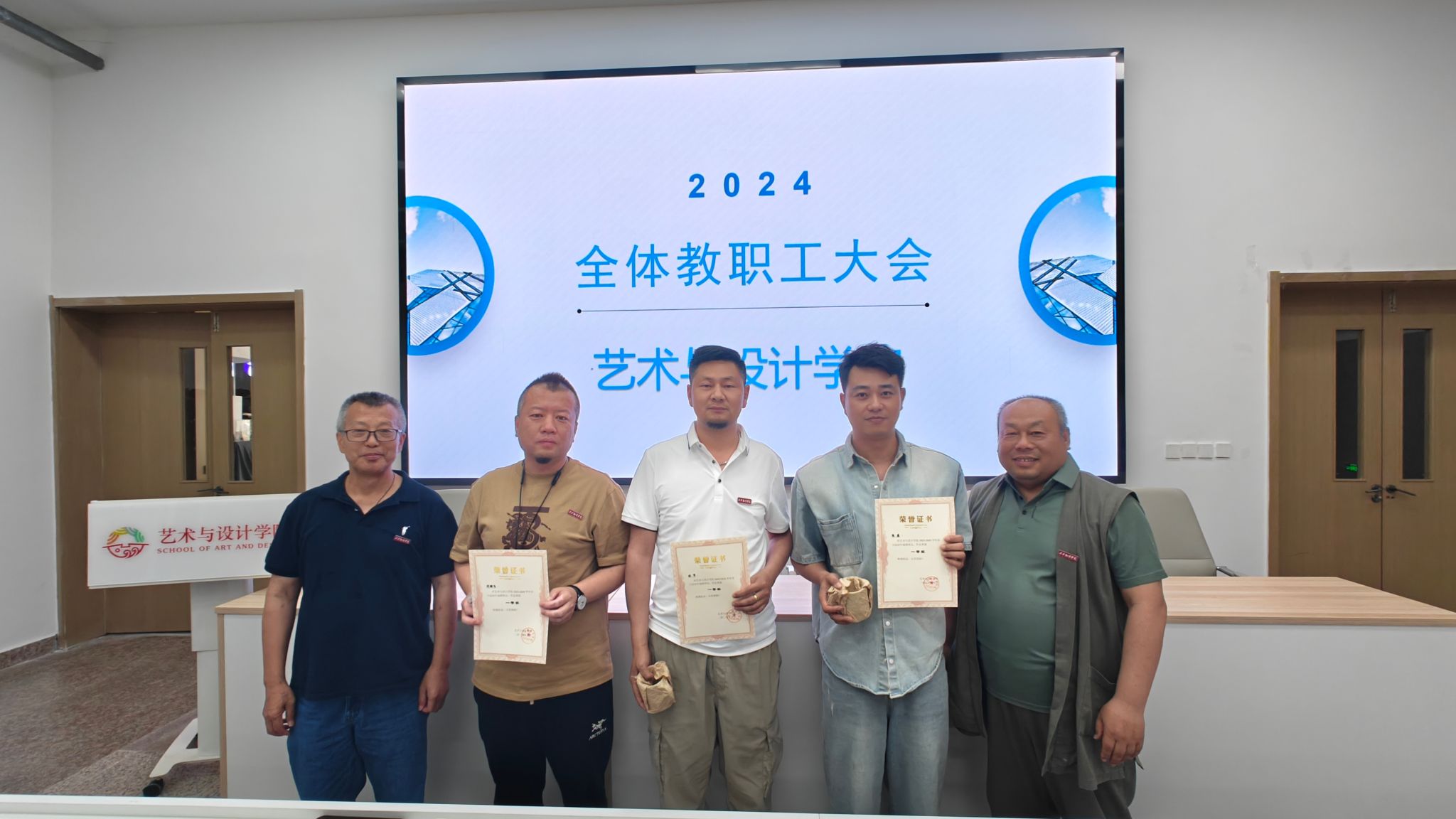 为进一步做好艺术与设计学院4月份工作总计和顺利完成毕业生答辩工作。5月14日中午,艺术与设计学院召开全体教职工大会,对外出写生实习表现的优秀教师进行表彰奖励,以及对毕业生答辩工作进行安排。艺术与设计学院院长董千,党委书记、副院长徐中,副院长马平,视觉传达系陆宝新教授、综办主任李宁和各专业负责人以及全体教职工参会。会议由环境艺术系主任吴迪主持。