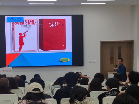讲座中张教授带领我们一起分析了各类红色作品。教授分别讲解了:文学作品《红星照耀中国》《长征》;影视作品由唐国强主演的《长征》;艺术作品《地球的红飘带》。