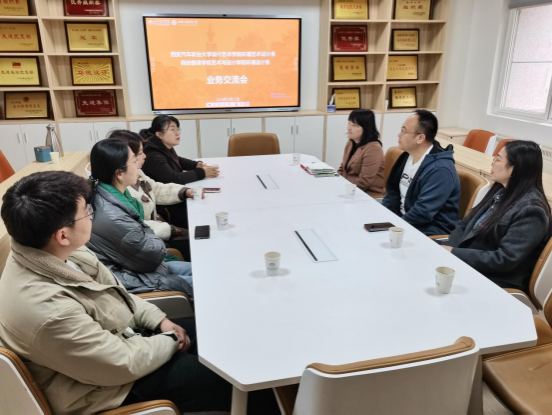 2024年3月12日,西安汽车职业大学设计艺术学院院长助理陈莉教授、环境艺术设计系系主任李婉莹、骨干教师郑雨溪、宋少元一行人来访我院走访交流,我院环境设计系系主任吴迪教授、副主任刘玉娟教授、骨干教师张鑫江参与此次交流活动。