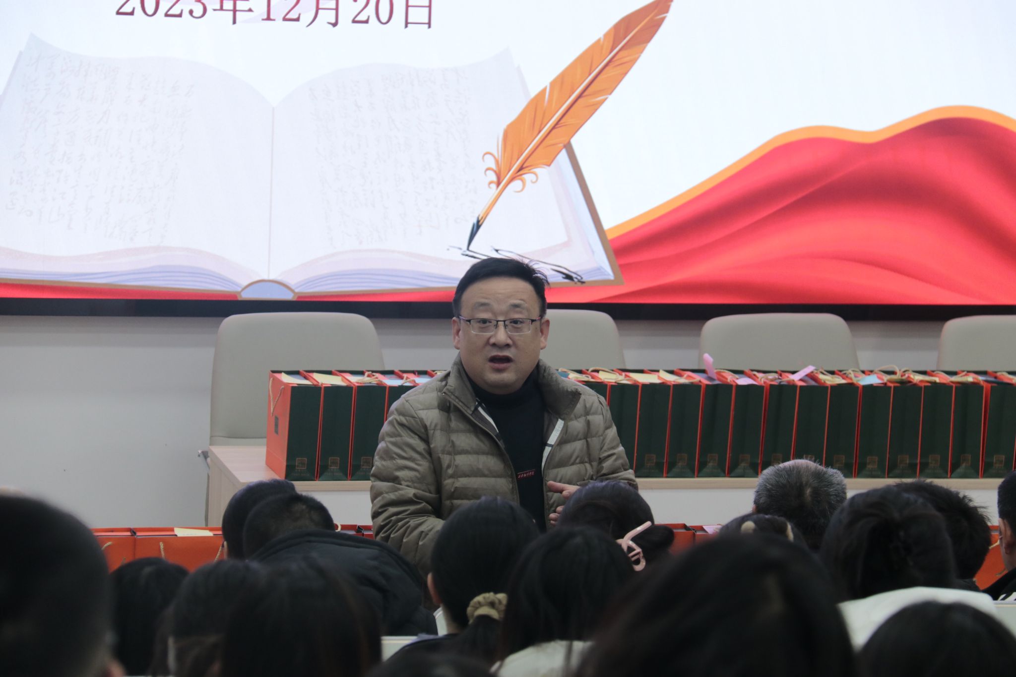 首先,由王瑛主任代表学院向艺术与设计学院所有正在备战研究生考试的同学表达了最诚挚的问候和祝福。同时表示学院为了帮助大家更好地应对考试,特此赠予各位同学冬日暖阳考研大礼包,为大家加油鼓劲、提供支持和关爱。王瑛主任还特别提及,每份暖阳考研大礼包上都有辅导员老师亲手写下的祝福语便签,所有老师衷心的希望大家取得好成绩,我们一“研”为定!