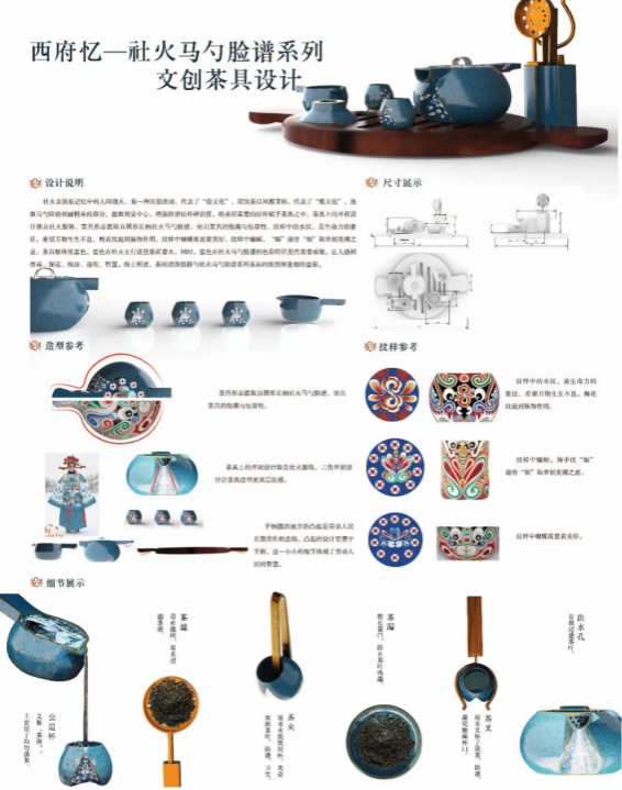 12.作品名称:《西府忆—社火马勺脸谱系列文创茶具设计》