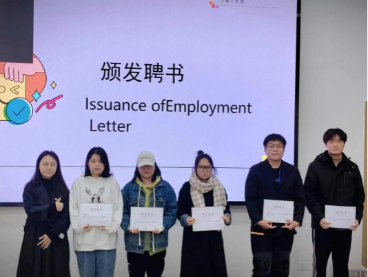 随后,由张海老师宣读聘任名单和获奖成员, 由董小健老师为受聘主理人颁发受聘证书,由马荣老师为受聘部长颁发受聘证书,张艺博老师为采编部优秀部员颁发证书,王瑛老师为传媒部优秀部员颁发证书。