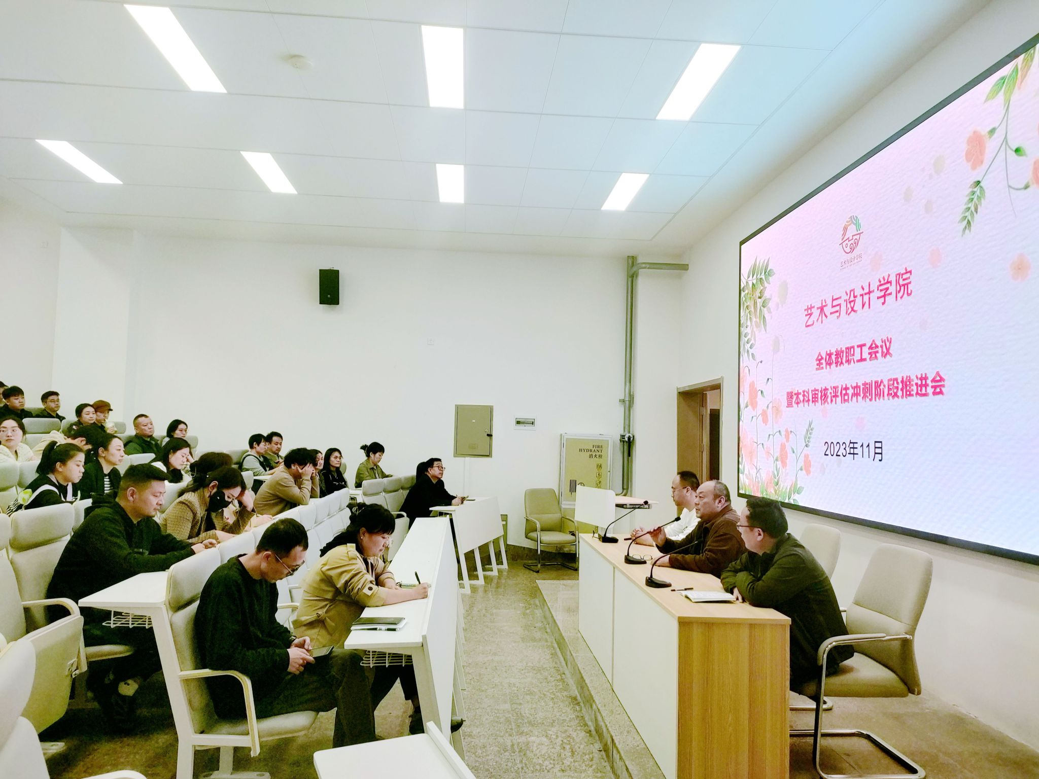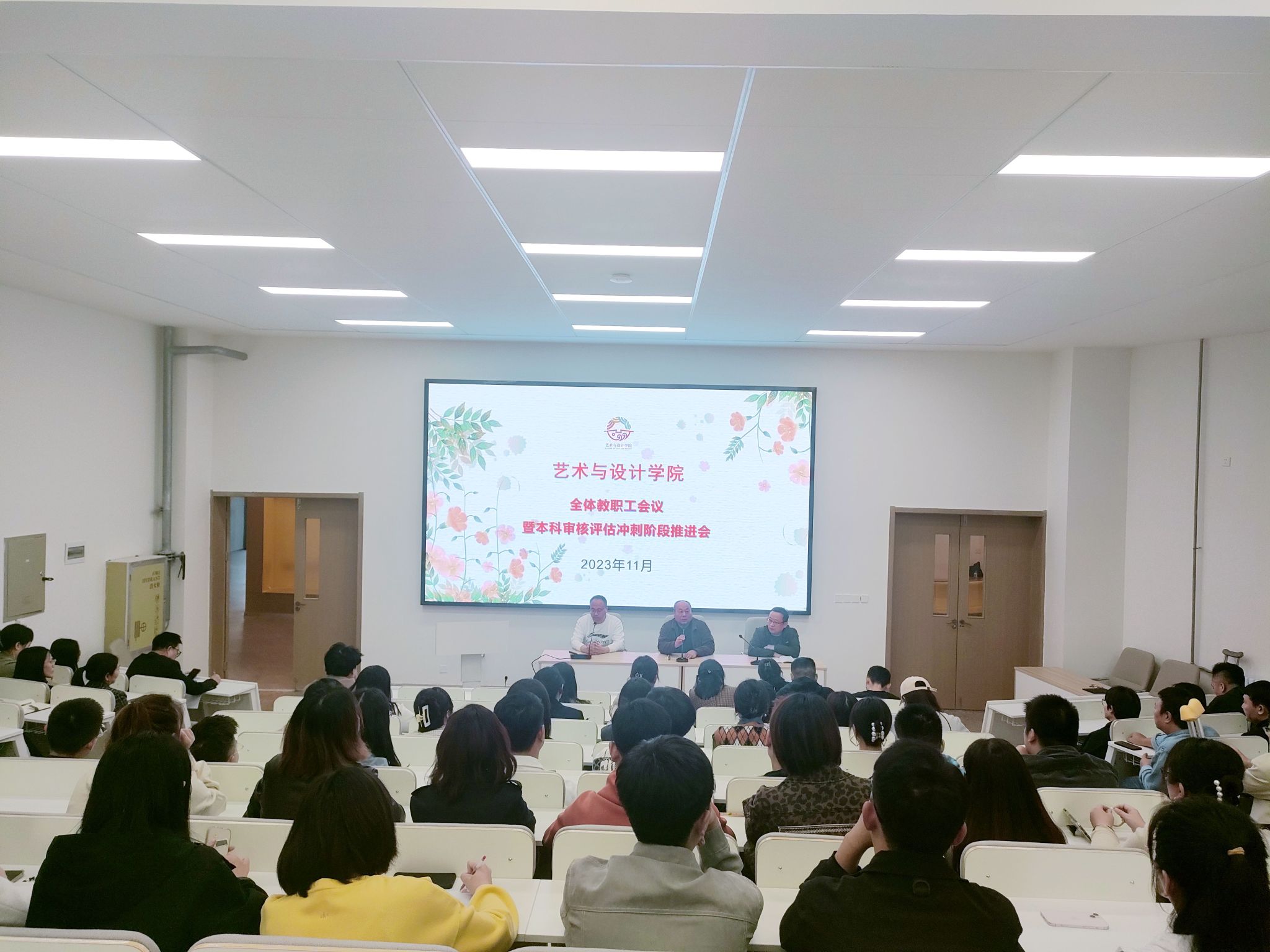 为高效推进迎评各项工作,部署本科审核评估最后冲刺阶段各项任务,全力推动本科审核评估工作扎实落地,11月1日下午,我院在5118T会议室召开了全体教工会——暨本科审核评估冲刺阶段推进会。学院领导班子、全体教职工参加会议。会议由艺术与设计学院院长董千主持。