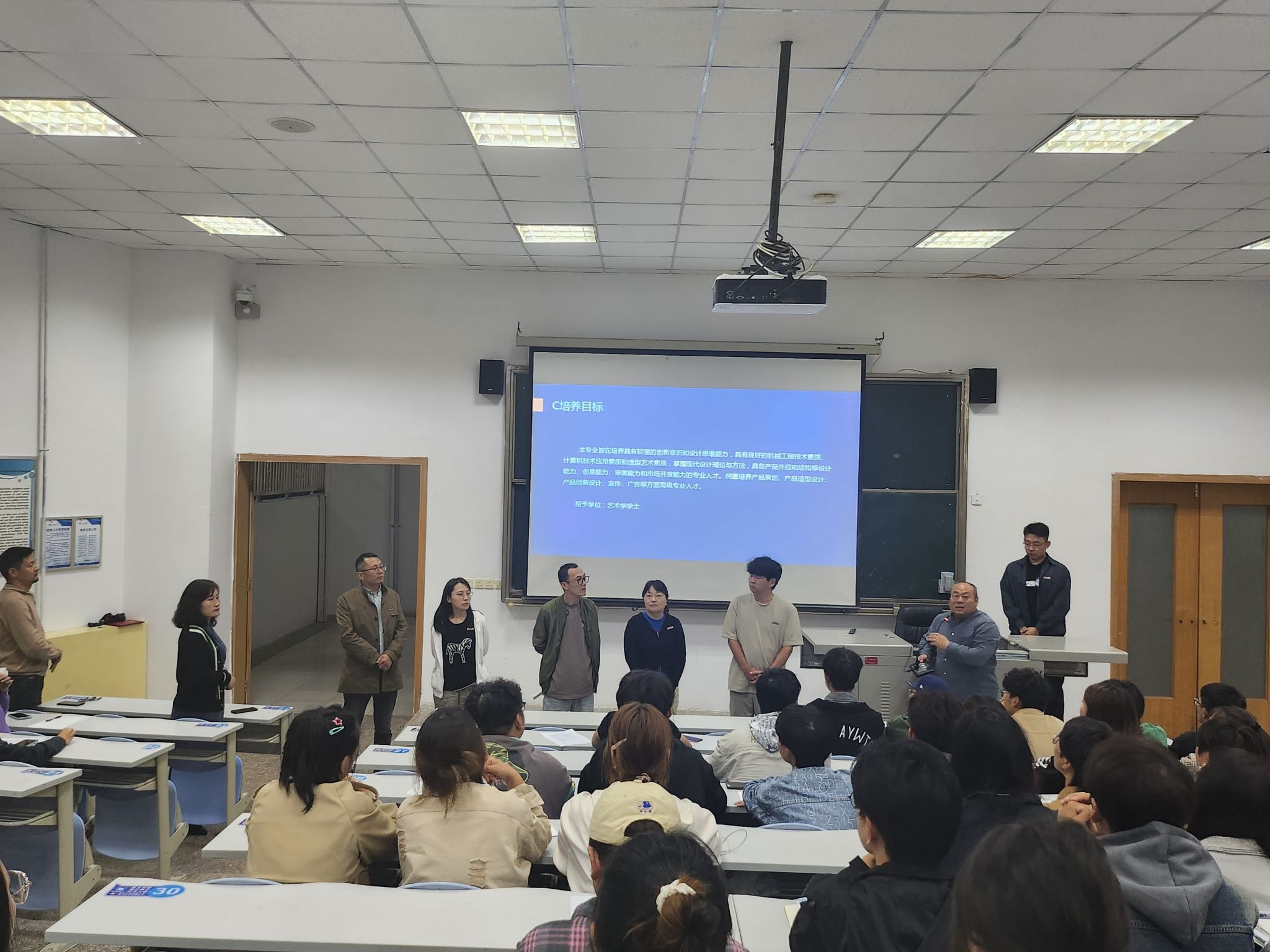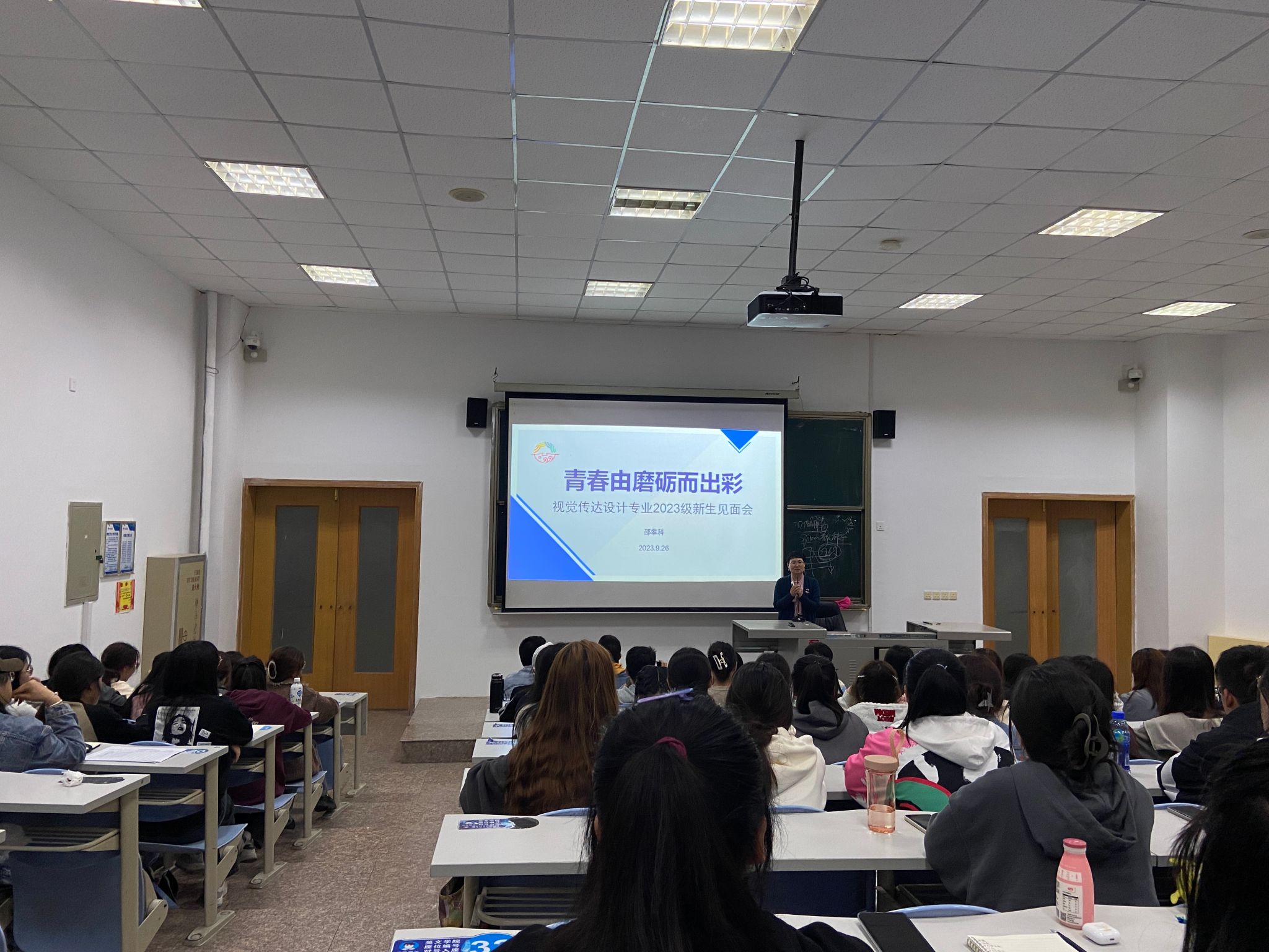 为指导和帮助2023级新生能更好的适应大学新生活,更加详细的了解学院,明确校纪校规,加强专业认知,培养良好的学习习惯;帮助学生了解本专业的人才培养模式,以及大学生活特点和基本要求,有效且科学的规划大学学习生活,艺术与设计学院根据学校新生入学教育总体安排,结合学校和学院实际,于9月26日晚在五号楼多媒体教室开展新生入学教育。分院院长董千,副院长左明刚、马平等领导到现场给学生见面。