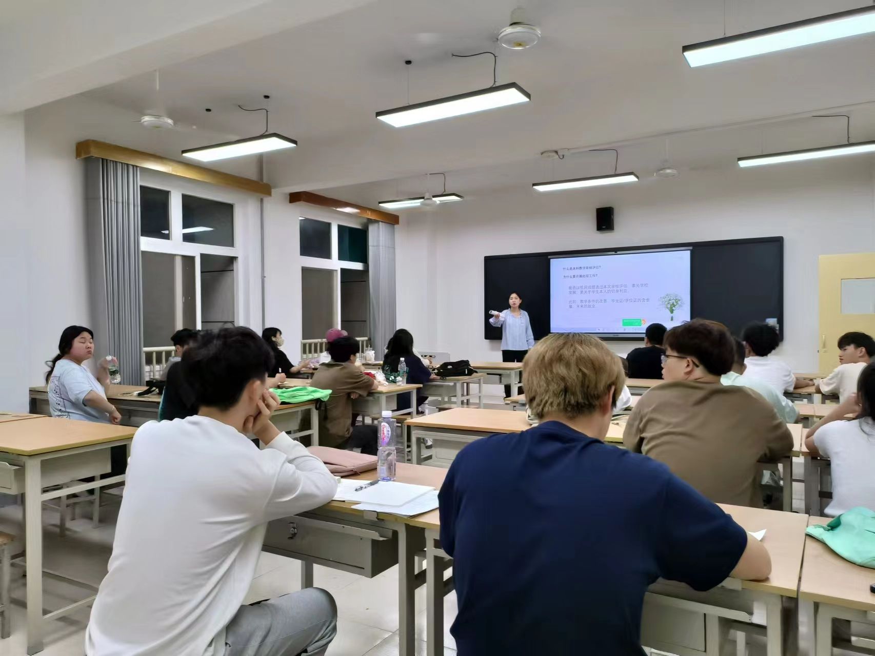 班会伊始,各位老师强调,我们应尽快从假期模式转向校园生活,以崭新的状态投入到新学期的学习生活当中。小到保证上课出勤率,大到实现本学期的目标与规划,真正做到时时有安排, 事事有成效。然后,老师结合近期时事重点强调了反诈安全问题。安全教育是我们关注的重中之重,任何人都不能掉以轻心,警钟长鸣!与此同时,本学期正值我校本科教育教学评估工作开展,各辅导员老师就这一相关工作进行了宣传与讲解,愿我院学生在迎评工作中展示出西译学子应有的风貌。
