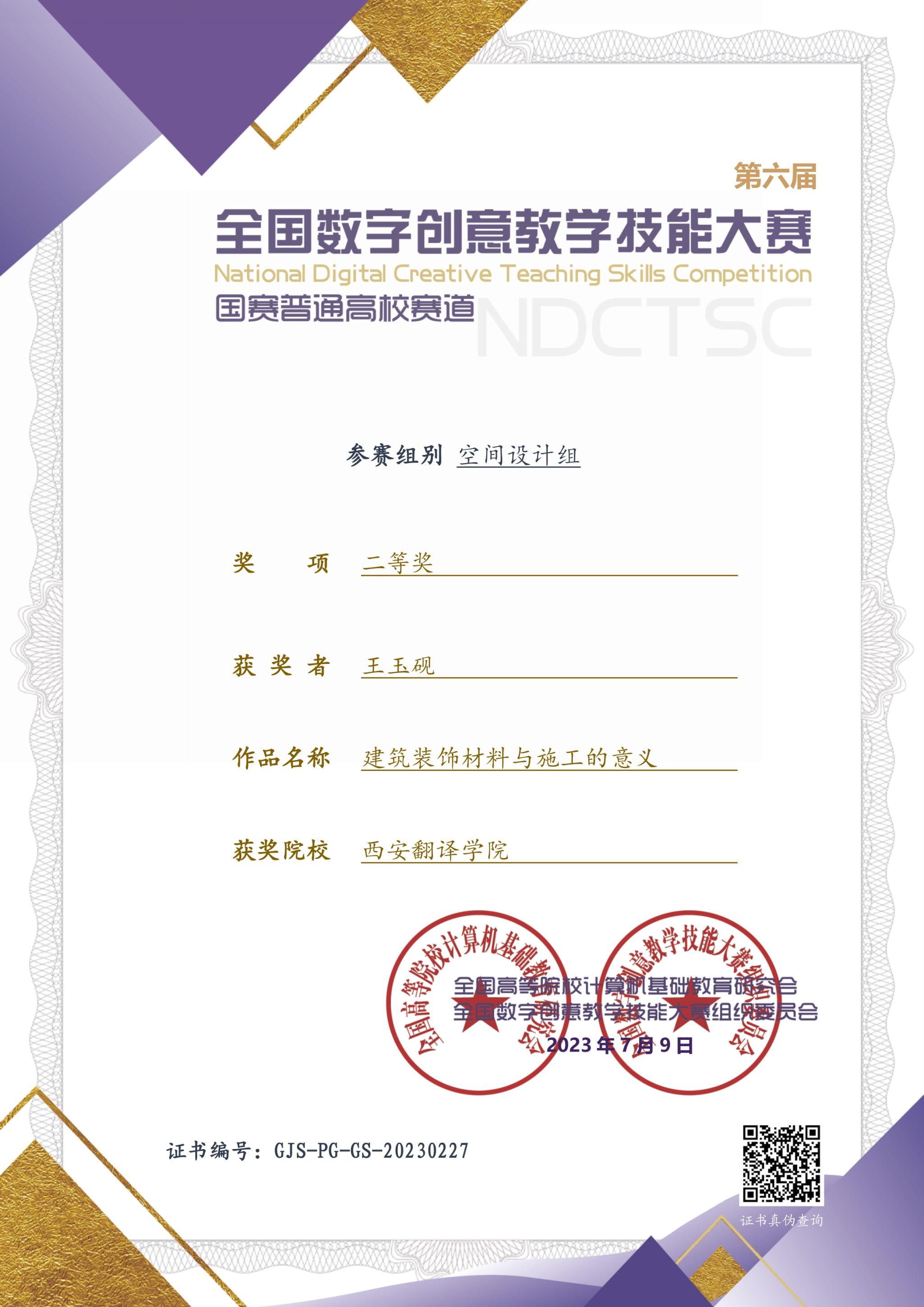 近日,我院教师在第六届全国数字创意教学技能大赛中喜获佳绩。此次大赛通过校赛、省赛、国赛的比拼,最终我院王玉砚老师的《建筑装饰材料与施工的意义》荣获国赛空间设计组二等奖;程瑾雪老师的《三维数字图像的发展历程》荣获数字媒体艺术组二等奖;周卉老师的《中国书籍设计进程》荣获视觉传达组二等奖。