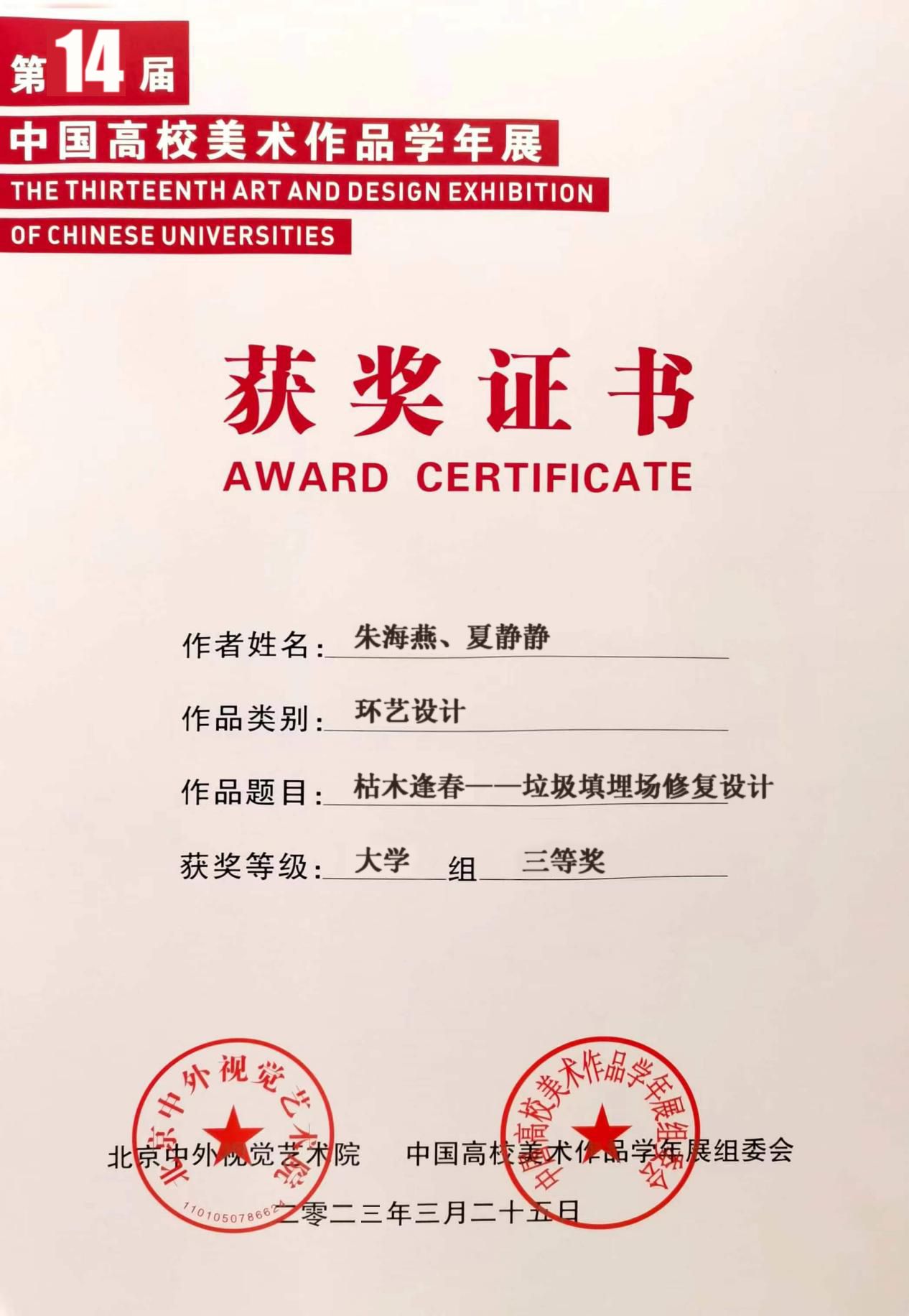 环境设计系积极引导师生参与学科竞赛,通过以赛促学,以赛促教提升学生的实践能力,在本次第十四届中国高校美术作品学年展喜获佳绩,其中荣获团体一等奖1项、优秀指导教师奖7项;师生参赛获奖共计16项(美术造型类获奖1项、美术设计类获奖15项),其中一等奖1项、二等奖7项、三等奖8项。