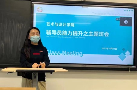 西安翻译学院艺术与设计学院2022—2023学年辅导员能力提升之主题班会初赛,于10月28日在10号教学楼举行。艺术与设计学院党委书记兼行政副院长徐中以及全体辅导员参加。比赛由艺术与设计学院综合办副主任王瑛主持。