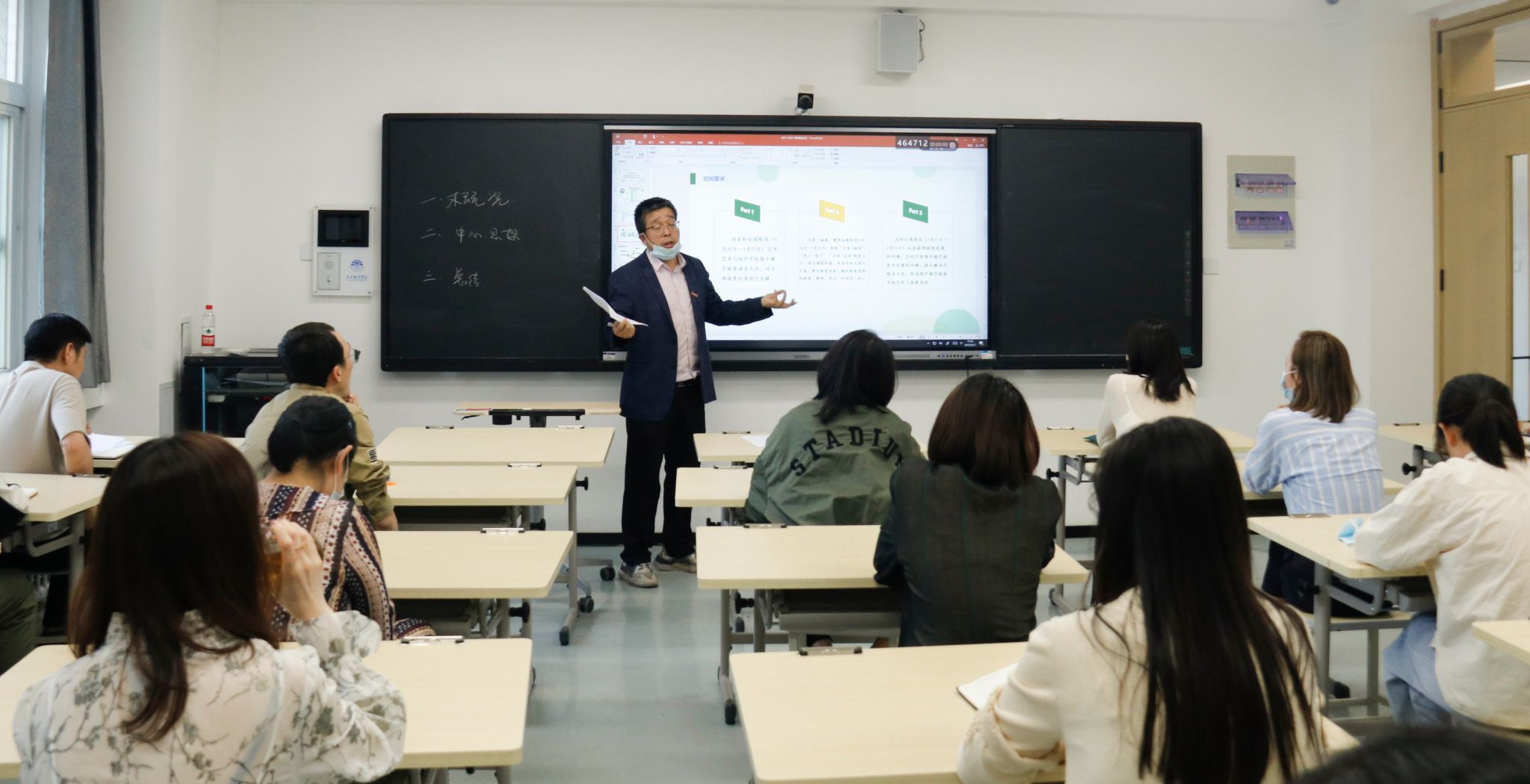本次会议由董小健主持,首先他对于本学期的检查报告进行了详细解说,并从领导小组、时间安排、检查工作等方面进行了具体讲述。董小健特别提到教学检查是教学活动的常规检查工作,老师们应该树立榜样,从学生平常的上课质量和课后作业着手,且因为疫情影响,应该更加重视线上线下相结合的授课模式。