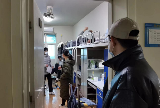 当晚,辅导员深入学生公寓开展工作,排查公寓的安全隐患,强调宿舍勤通风,并引导安抚学生情绪,关心学生健康,强调生活作息规律,且学习上也不能因线上教学而懈怠。随后,又再次为学生讲解疫情防控各个要点,要求学生谨记疫情防控注意事项并严格遵守。