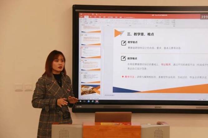 本次比赛分为教学设计,说课,现场教学演示以及回答评委问题四个部分,参赛老师们根据实际教学科目,将创新部分贯彻融入其中,既有严谨的教学逻辑,又有轻松的教学氛围,参赛老师们精心准备的ppt以及演讲内容无不让人耳目一新。在每个老师的结束阶段,评委们都会根据老师们的比赛情况进行中肯的评价以及提出自己的宝贵意见。就像本次获得一等奖的翟佳佳老师,评委们就指出了要将ppt文字与所授课的动画特色结合起来这一宝贵建议。同时,评委老师也对各位老师的表现做出了肯定。