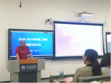 2021年7月9日上午,艺术学院在10T12教室召开2020-2021学年第二学期科研工作会。校长助理兼科技处处长王利晓、科技处副处长高晶晶、艺术学院院长董千、行政副院长徐中、教学副院长左明刚、科研副院长马平及全院教师70余人参加了本次大会。