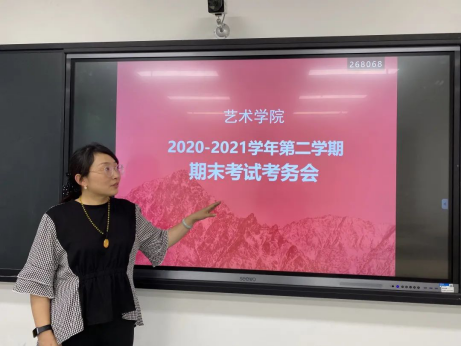 2021年6月30日,艺术学院在10T11举行期末考试考务安排会议,出席本次会议的领导有:艺术学院院长董千、行政副院长徐中、教学副院长左明刚、科研副院长马平,综合办主任邵伟娣、副主任管蕊、各系主任,艺术学院全体教师参加。本次会议由综合办主任邵伟娣主持。