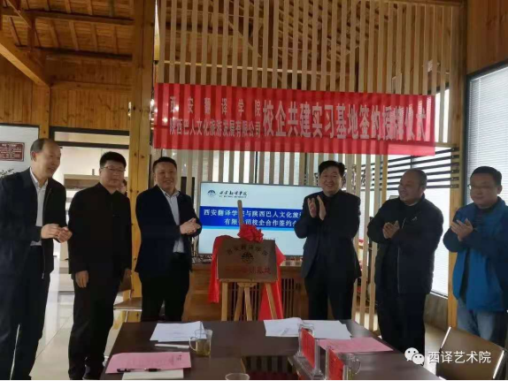 2021年4月10日,西安翻译学院与陕西巴人文化旅游发展有限公司公司在中坝作坊小镇举行了校企合作签约仪式。出席本次签约仪式的领导有:西安翻译学院副校长齐玉水、艺术学院院长董千、教务处副处长陈潇、艺术学院行政副院长徐中、教务处实践教学科科长赵鑫、艺术学院综合办主任邵伟娣、综合办副主任管蕊、环境设计系专职教师崔宇、陕西巴人文化旅游发展有限公司总经理陈国盛、党支部书记王素启、办公室主任谭耀宇。石泉县文化旅游广电局局副局长王广明也应邀出席了此次签约仪式。
