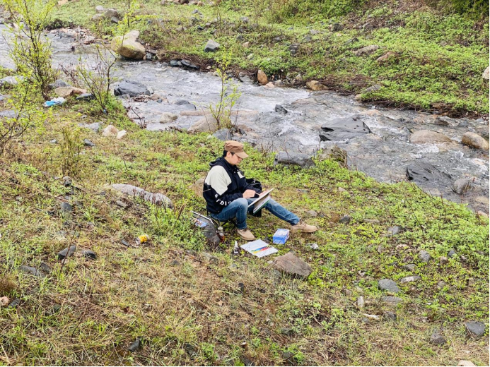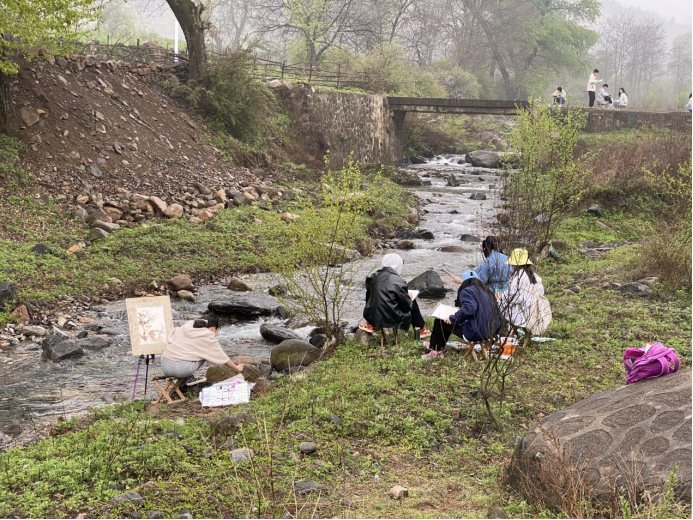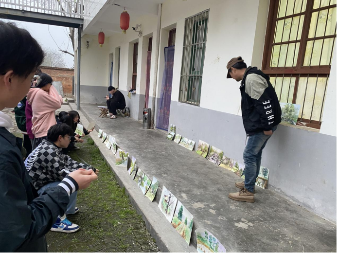 春风和煦,风景优美,朴素的砖墙土墙,简单的建筑方式,随自然而变,生趣盎然体现了村民在长期的山水共存中,发展出的对自然的基本智慧。同学们也深深沉浸在这种自然美景之中,他们三三两两坐下,拿出画笔投入到绘画的热情。希望他们在经历过这一段时间的修行之后,能将这种对绘画的热情转化为学习的兴趣。