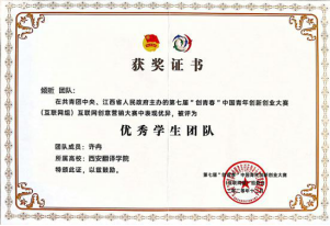 喜报——我院学生团队荣获第七届“创青春”互联网创意营销大赛优秀学生团队