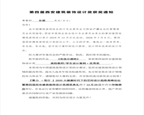 2021年1月,第四届西安建筑装饰设计奖评选启动。本次活动“聚力·笃行”为主题,意在凝聚西安建筑装饰设计全行业之力,引导行业群体从思想层面转到行动层面。用前沿的设计思维为西安设计力量破局出新,为西安设计力量的成长与壮大提供新的思路和指引方向。