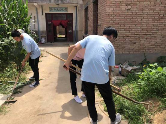 我们去给他送去了米还有油,然后询问了老人家的身体状况。我们看到老人家的院子里面有很多的杂草,我们就自发地拿起老人院子里面的除草工具,帮着老人除掉院子里面多余的杂草。