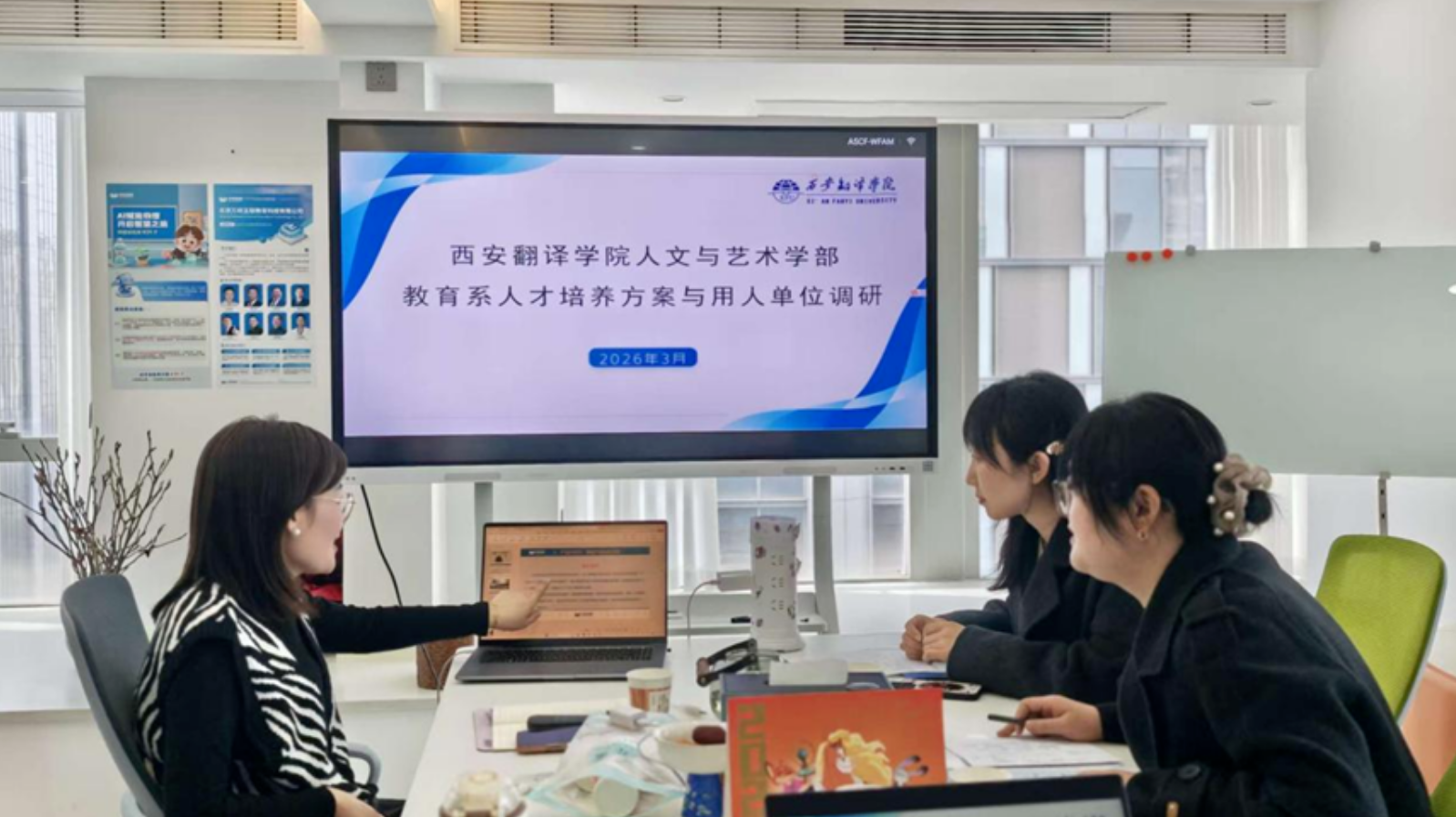 为精准把握人工智能时代教育行业用人需求导向,推动小学教育等师范专业人才培养方案优化升级,促进人才培养与行业需求同频共振,近日,人文与艺术学部教育系主任杜赟、学前教育专业负责人杨亚博、小学教育课程与教学教研室负责人唐叶焓一行赴万校互联教育科技企业(西安分校)开展AI+教育背景下师范人才培养与企业用人需求专项调研座谈。双方围绕AI教育行业发展、岗位能力要求、校企协同育人等核心议题展开深入交流,为小学教育专业建设与课程改革提供了重要参考。