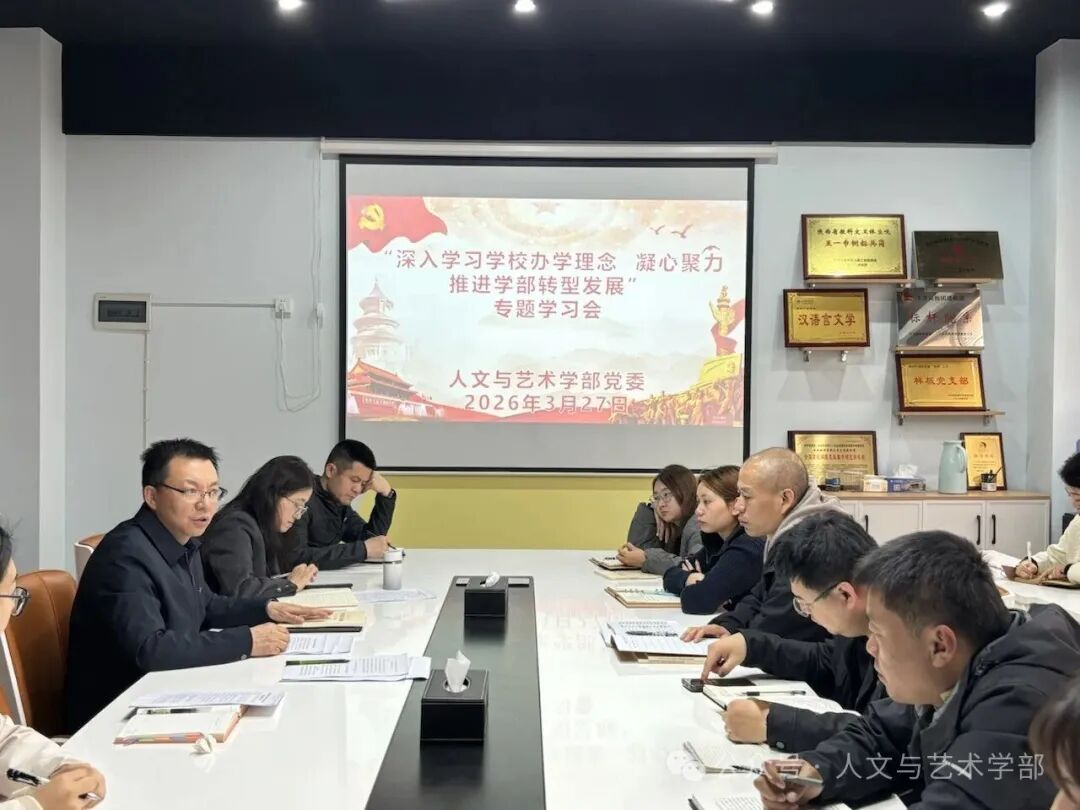 3月27日上午,人文与艺术学部召开“深入学习学校办学理念,凝心聚力推进学部转型发展”专题学习会。此次会议旨在全面学习贯彻学校最新转型发展理念及相关会议精神,凝聚共识,推动学部在转型发展的关键时期迈出新步伐。学部党委书记、副部长李绍先、综合办主任王宁、综合办副主任苏津津,各党支部书记以及团委书记、副书记参加学习讨论。