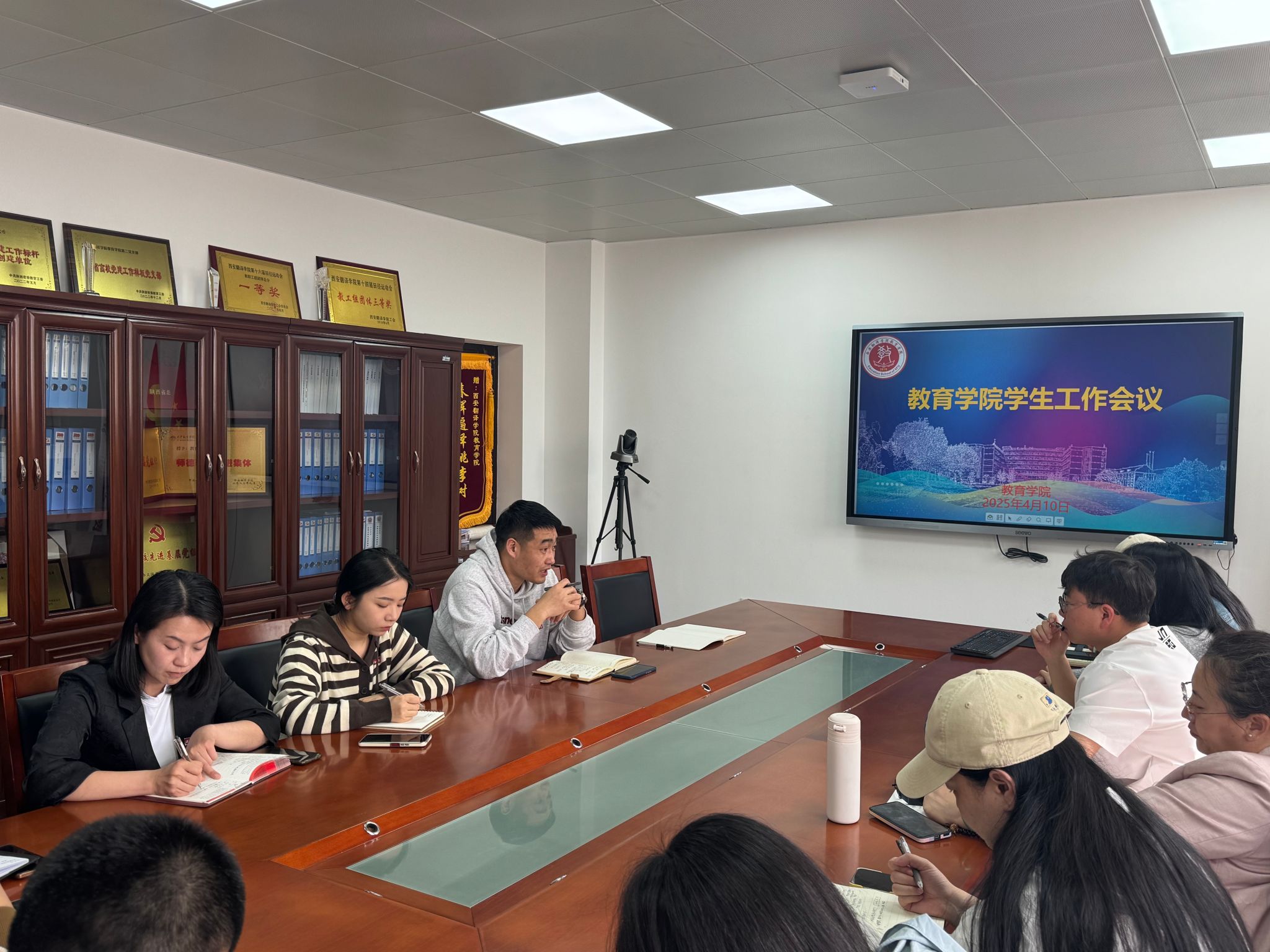 4月10日,教育学院于学院会议室召开学生工作会议,会议由综合办副主任潘亮亮主持。此次会议传达学校4月份学生工作例会精神,并对学院后续学生工作进行细致部署。