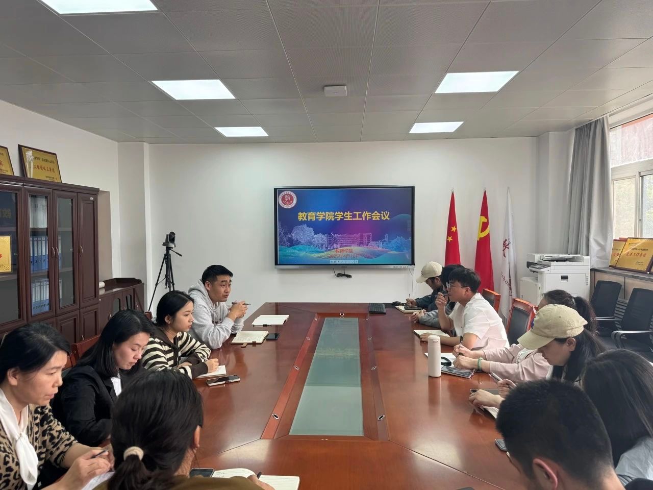 4月10日,教育学院于学院会议室召开学生工作会议,会议由综合办副主任潘亮亮主持。此次会议传达学校4月份学生工作例会精神,并对学院后续学生工作进行细致部署。