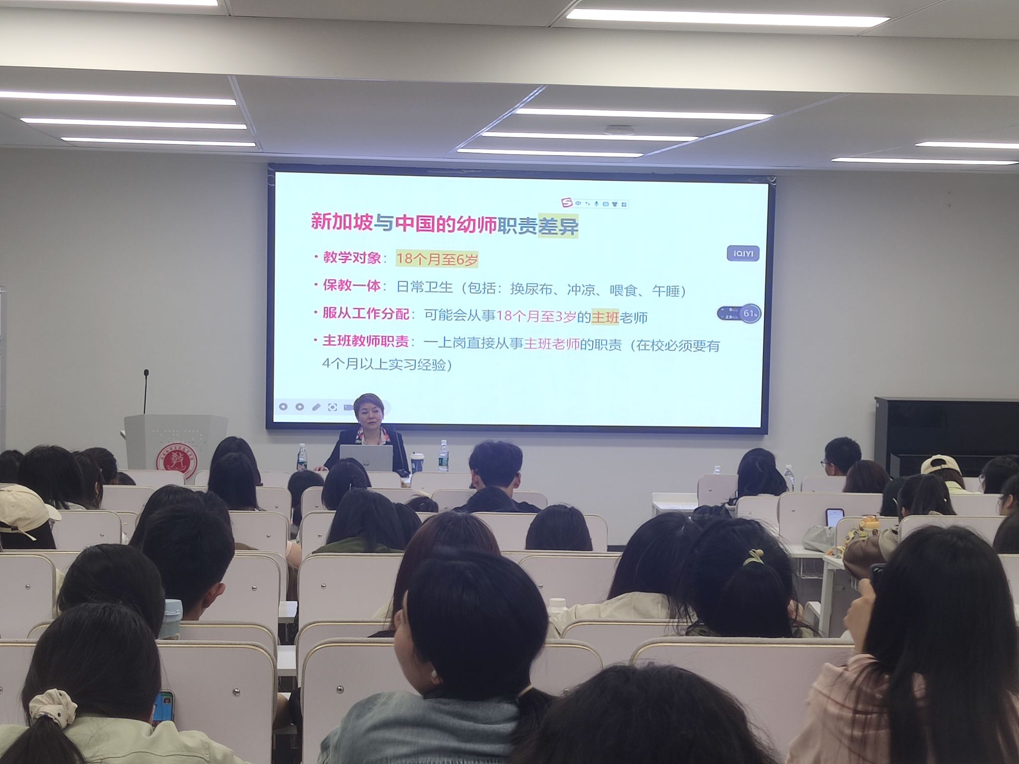 4月16日晚,在国际交流与合作处的组织下,新加坡人民行动党社区基金会幼儿园(以下简称PCF)幼师项目负责人孙雯莉老师一行,为我校教育学院2025届、2026届学生举办专场就业宣讲会。国际交流与合作处处长王明明、科长刘潇,教育学院综合办副主任刘正安及教育学院140名学前教育专业学生参会。