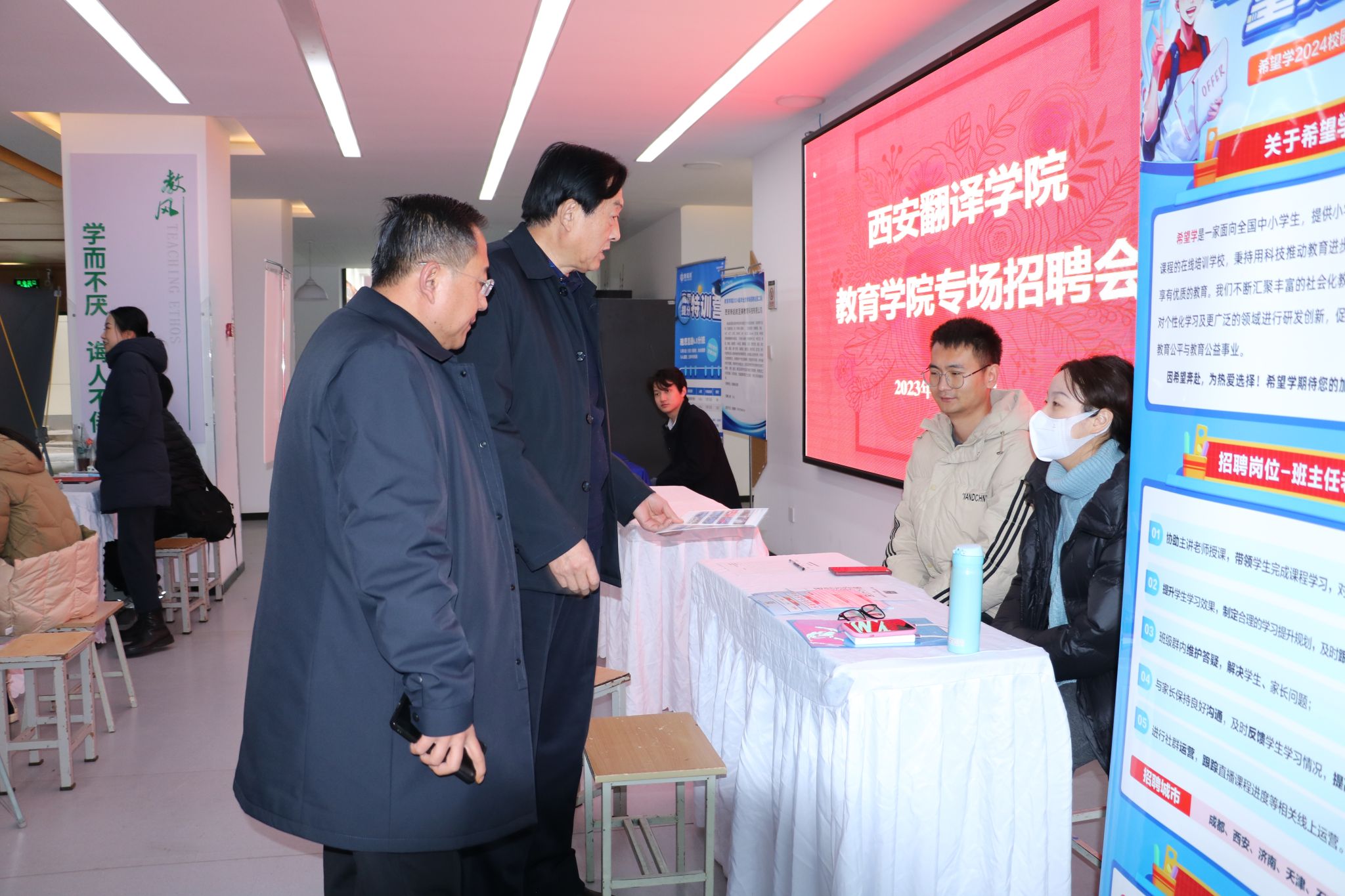 为了加强教育学院学生就业工作,拓宽就业渠道,12月13日下午,教育学院在八号教学楼举行2024届毕业生第二场教育类专场招聘会。教育学院院长何兆华,党委书记、副院长王小龙,综合办副主任刘正安、张改宁等到招聘会现场指导工作。