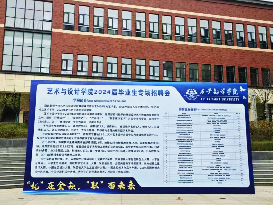 本次招聘会共有29家企业参加,超过71个岗位供毕业生挑选,需求人数近500人。艺术与设计学院环境设计、视觉传达、产品设计、数字媒体艺术四个专业与招聘企业匹配度极高,此次招聘会为毕业生就业打下了强有力的基础。