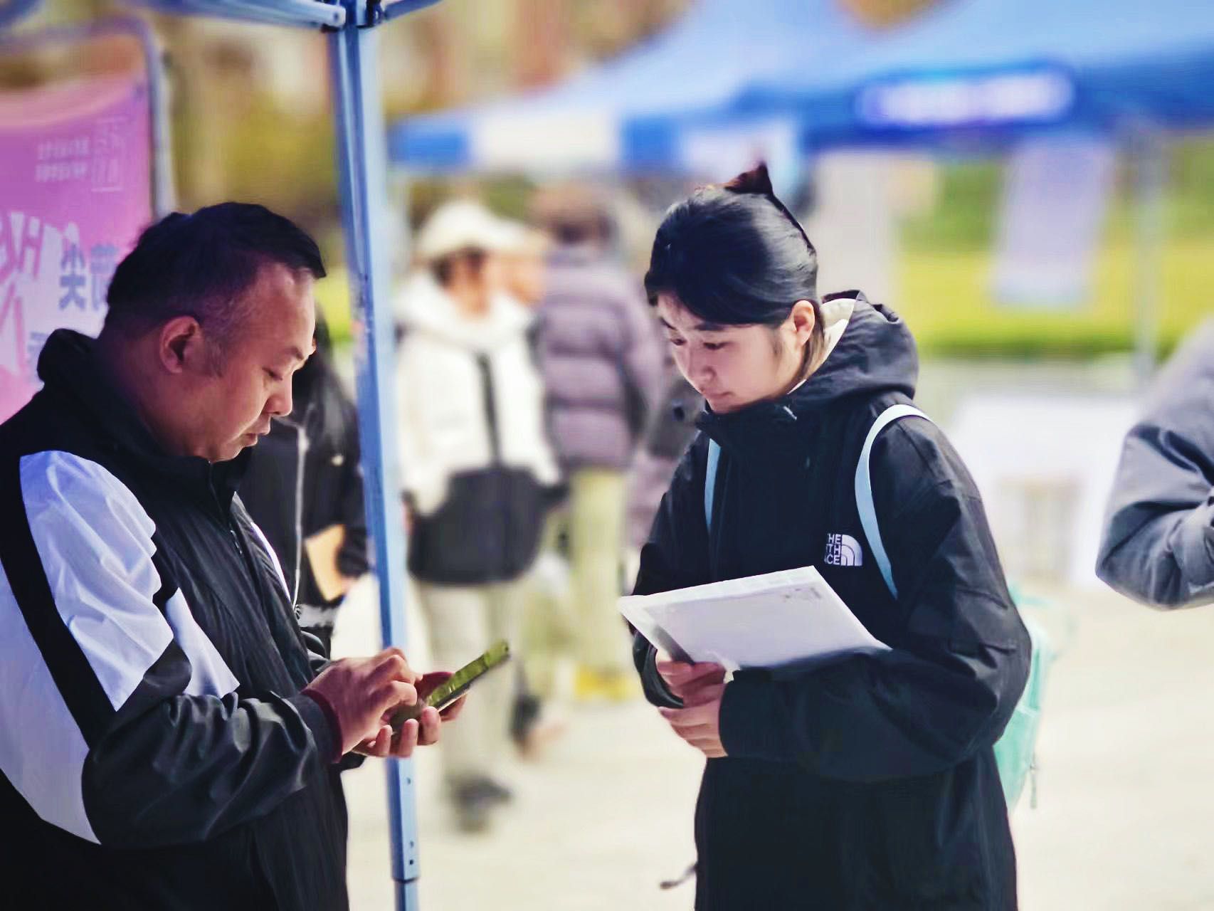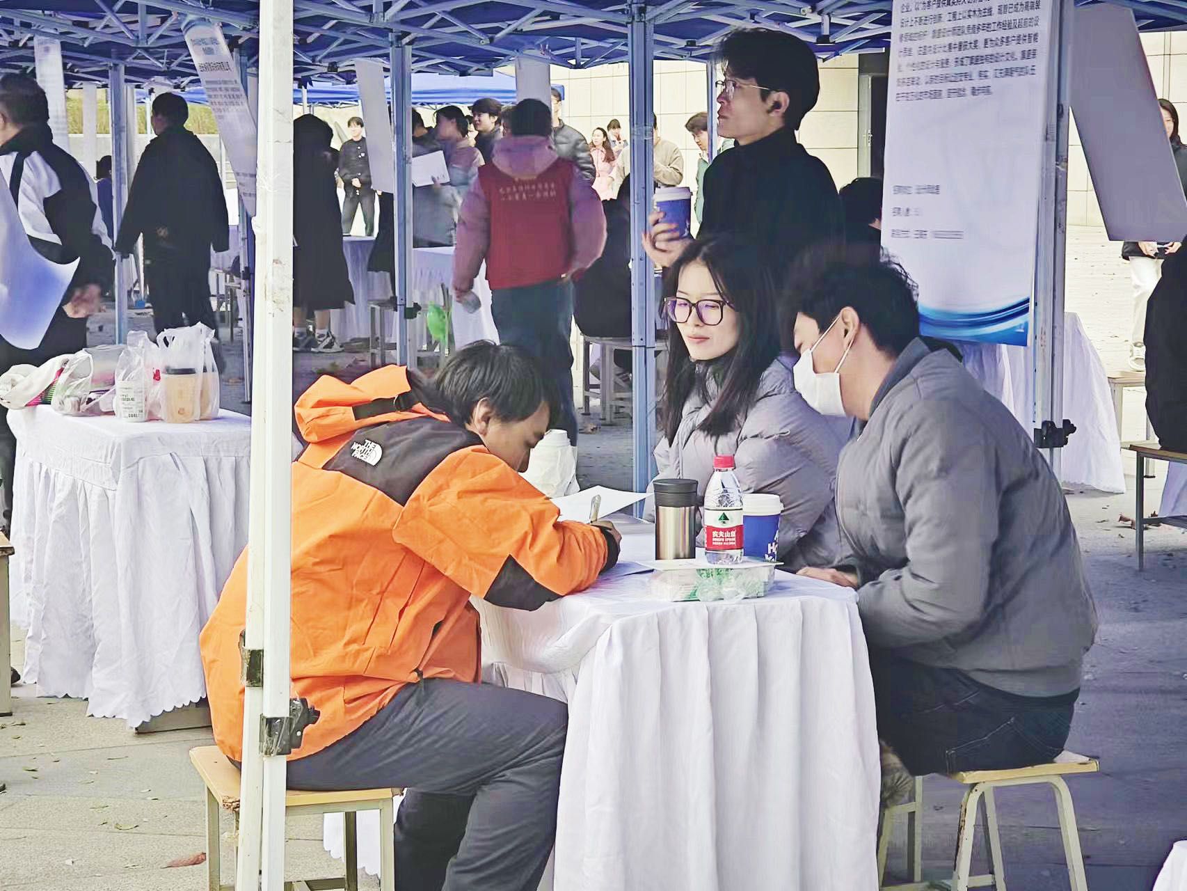 中午12时整招聘会开始。毕业生陆续进入会场毕业生们在心仪企业展位前驻足,积极向企业工作人员展开进一步咨询,主动了解用人单位的详细情况。各企业负责人向毕业生们介绍岗位需求、人才需求、薪酬待遇等。应聘人精问细听,招聘者深思酌言,双方一问一答中达成共识。