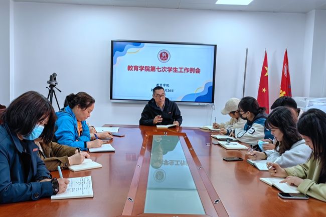 为更好促进教育学院班风学风建设,营造良好学习氛围,培养学生综合素质提升,10月24日上午,教育学院召开第七次学生工作例会。教育学院综合办副主任刘正安主持,全体辅导员参会。