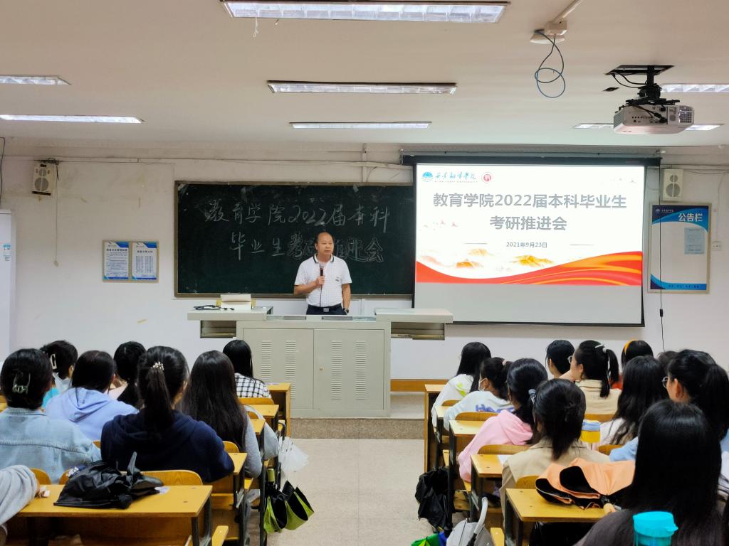 为进一步提升人才培养的质量,切实做好学生考研相关指导与服务工作,帮助学生们树立考研信心,助力2022届本科毕业生高质量就业。教育学院于9月23日晚19时在8214L教室召开2022届本科毕业生考研推进会,综合办主任王晓东、海文考研郭成万校长、专职教师李盼盼、李雨池、毕业班辅导员及2022届考研学生出席本次会议。